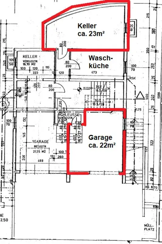 Zur Wohnung gehören ein Garagenstellplatz sowie 2 PKW-Stellplätze im Freien, sowie ein großer Kellerraum mit ca. 23 m².