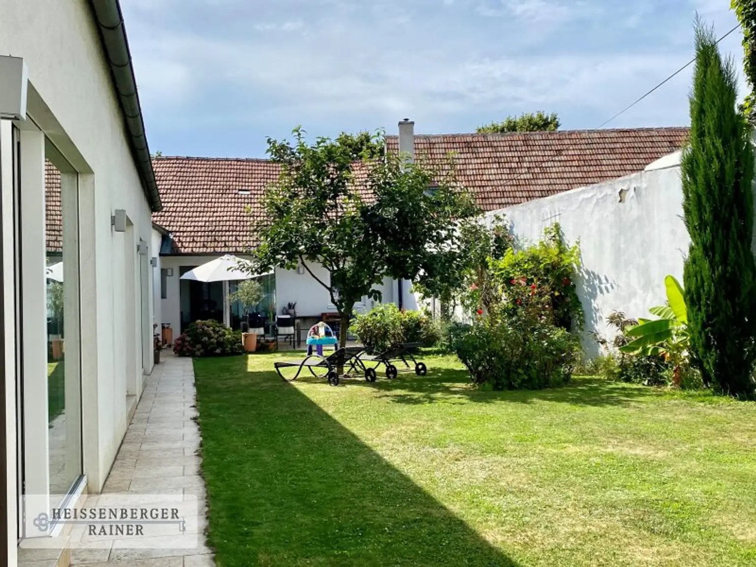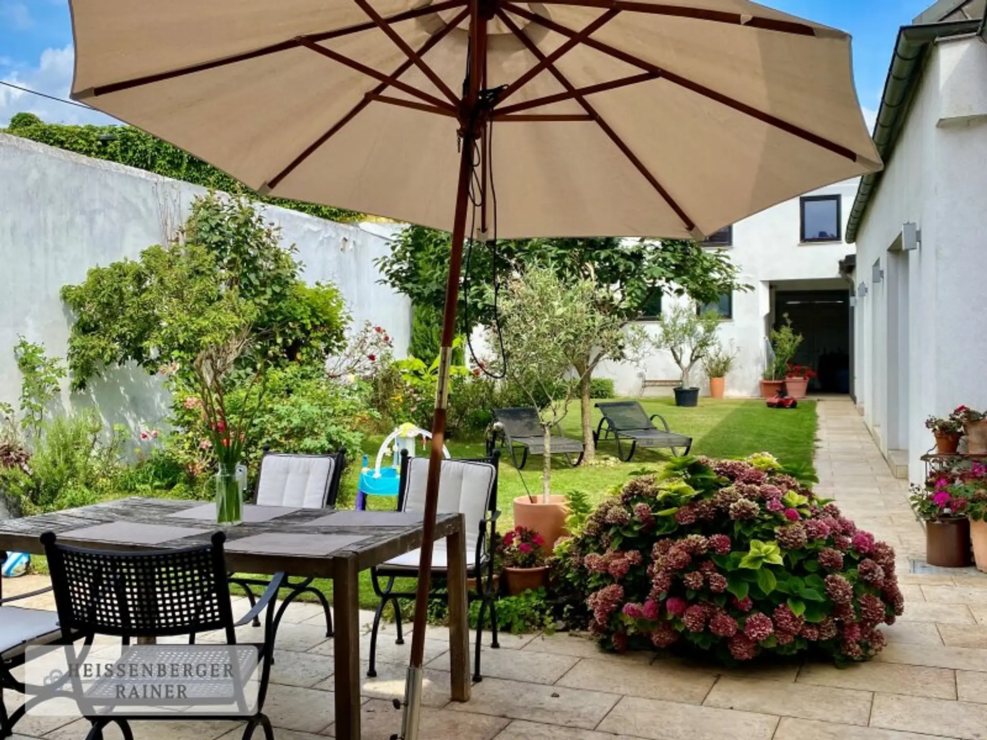 Mit dem Einsatz von viel Liebe, Einfühlungsvermögen und hochwertigen Materialien entstand 2010 aus diesem klassischen ehemaligen Winzerhaus ein repräsentatives, klar und offen strukturiertes modernes Wohnhaus. Es orientiert sich mit großflächigen Fenstern und Schiebetüren um den traumhaft schönen, sonnigen und komplett uneinsehbaren Atriumgarten. Innen und Außen gehen gekonnt und scheinbar unmerklich ineinander über und schaffen ein besonderes, sehr offenes und gleichzeitig sehr entspanntes Wohngefühl.