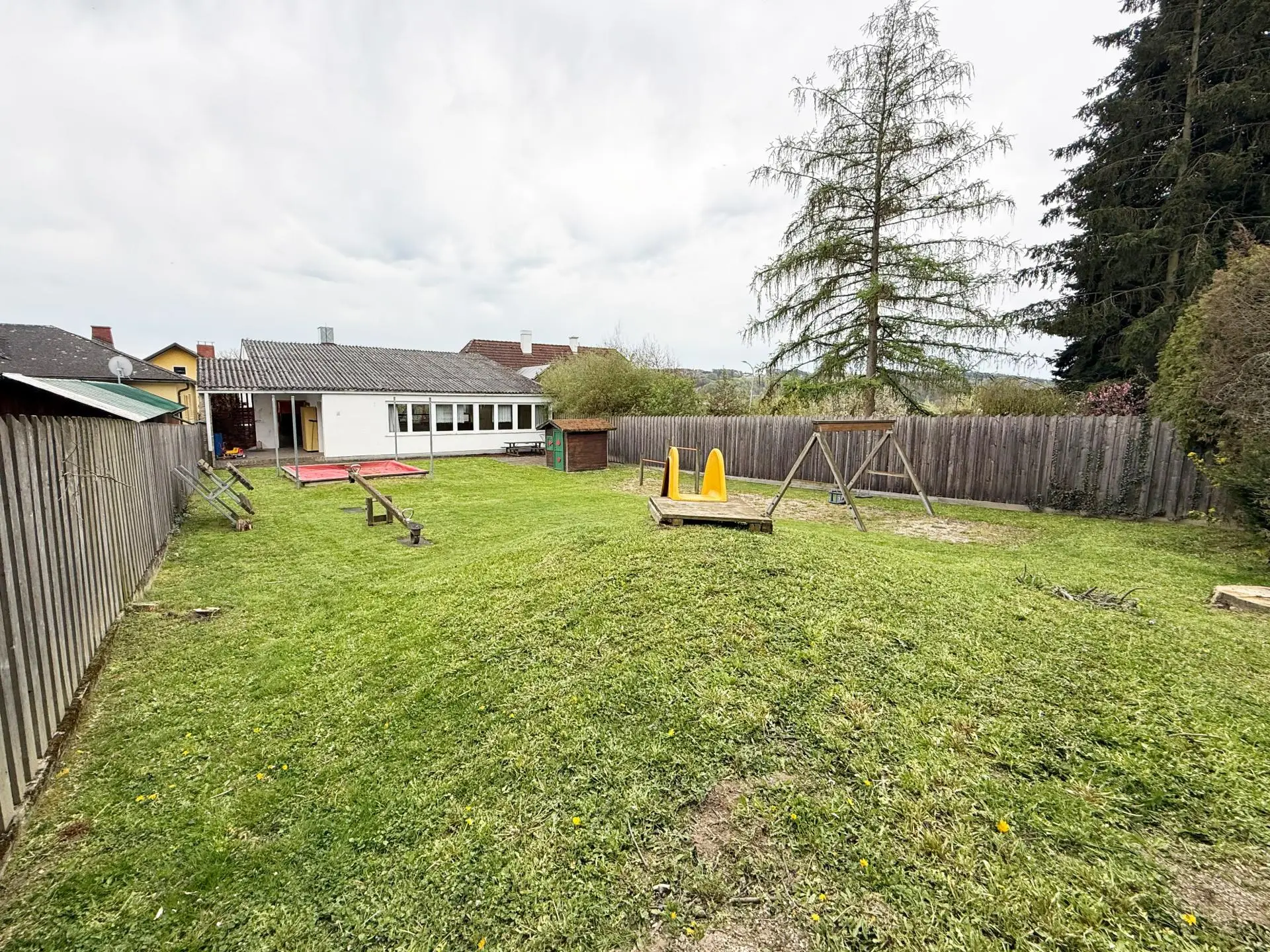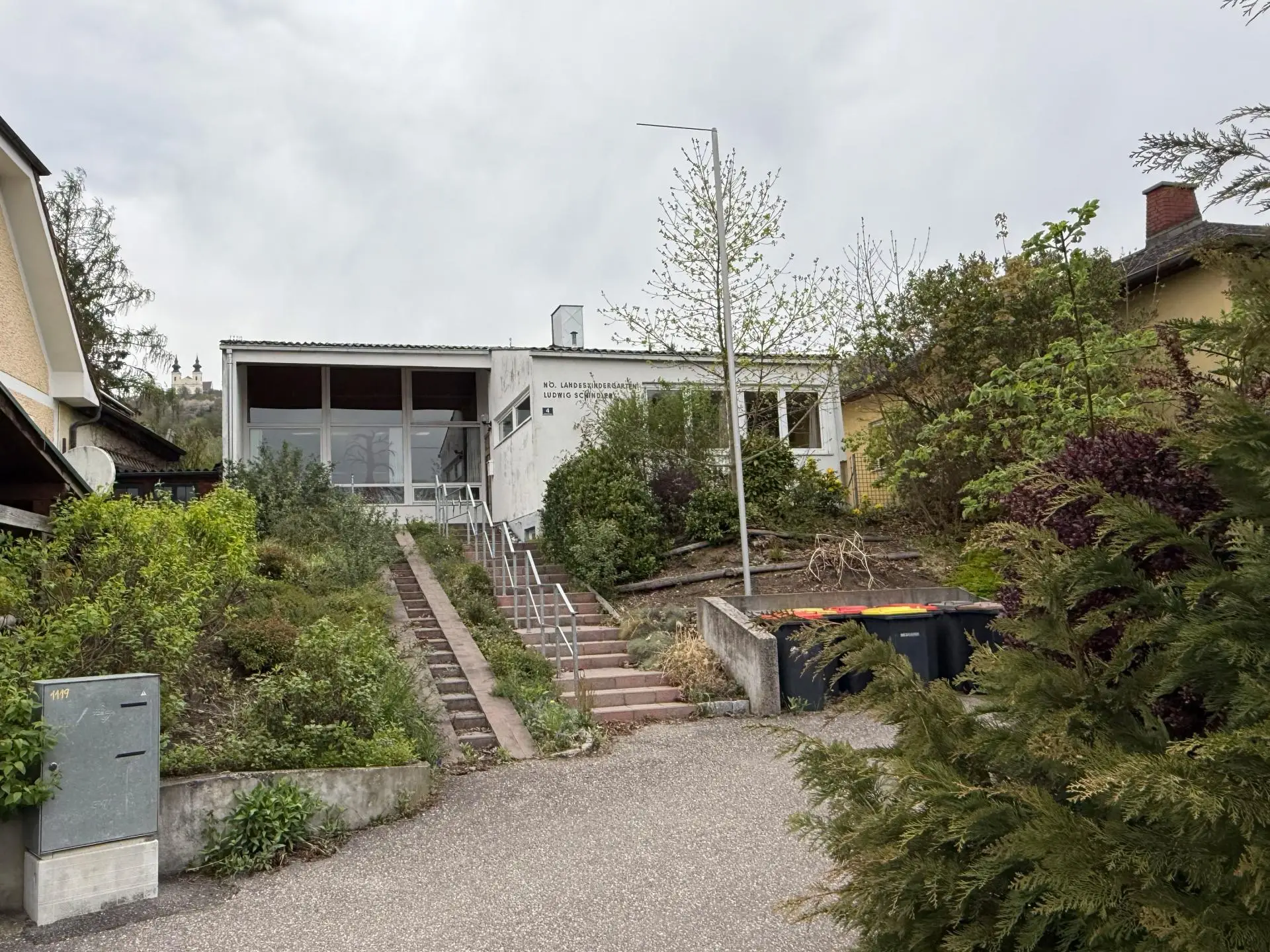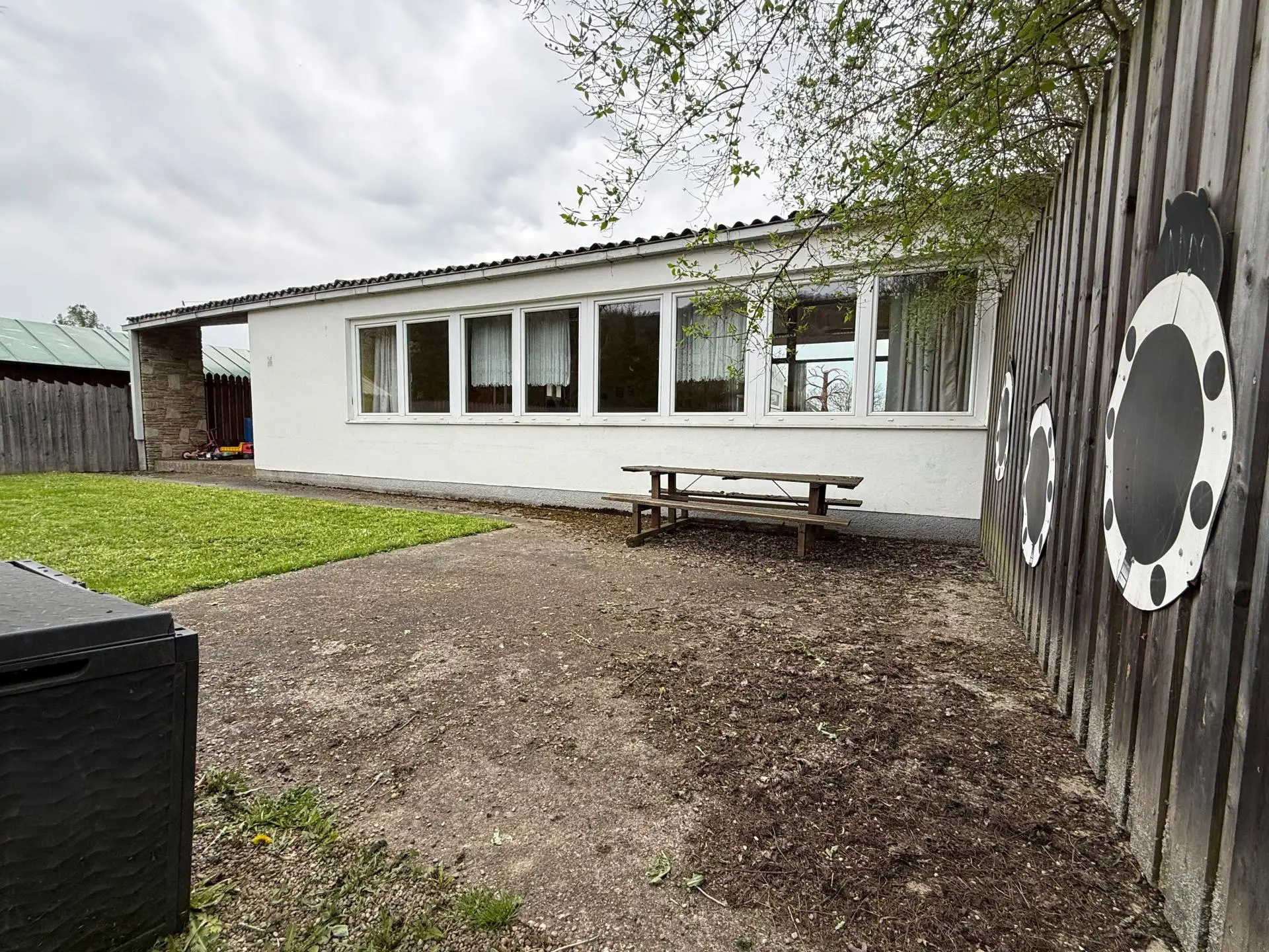 Bis vor kurzem als Kindergarten genutzt, erwartet Sie vor Ort ein trotz des Alters gepflegtes Gebäude mit großem Saal, Verbindungsgang sowie einem Büro-, Archiv- und Sanitärraum im EG, sowie einem Lager- und Technikraum im Keller!