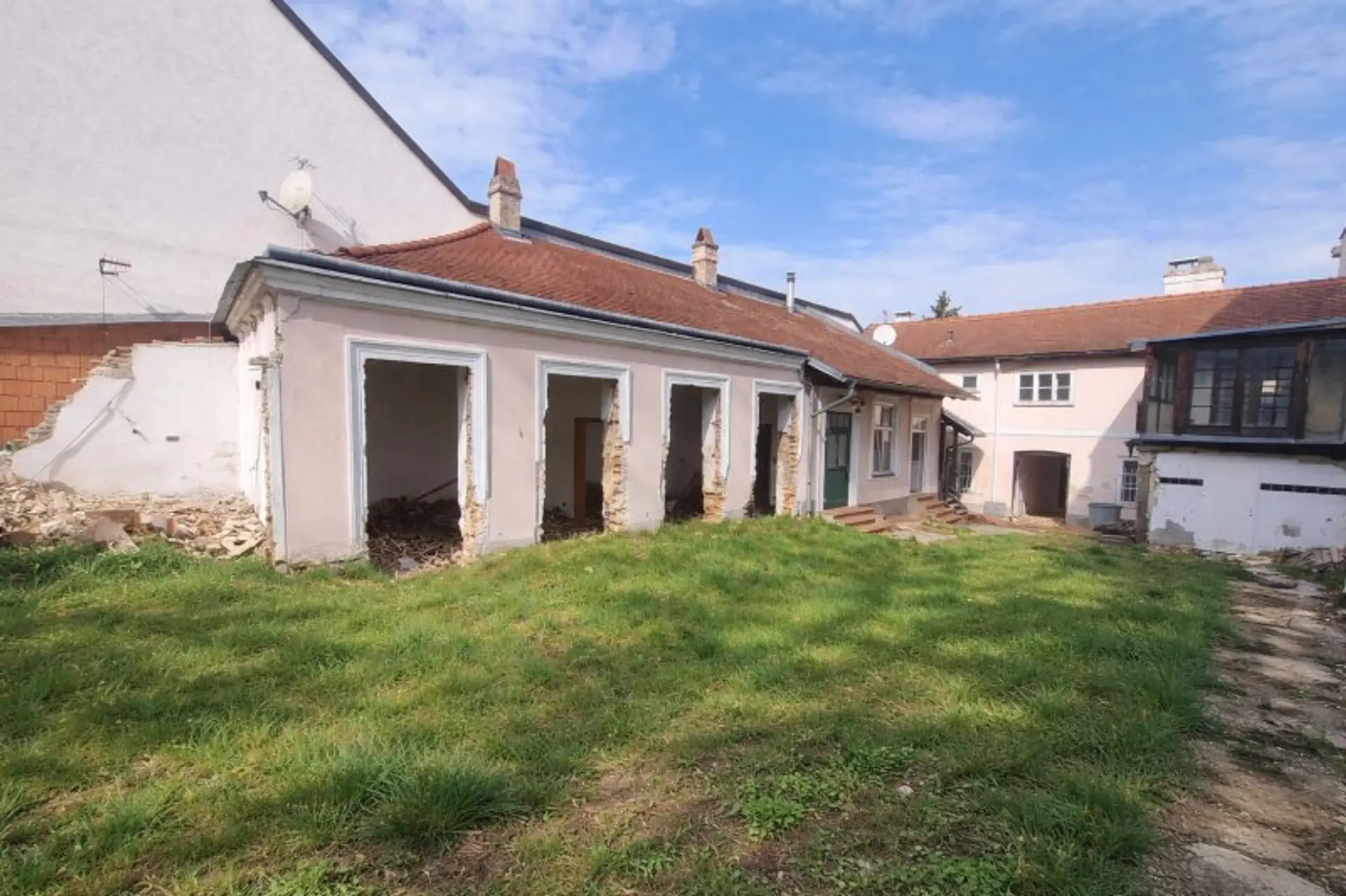 - Auf dem Grundstück steht ein älteres Gebäude mit ensembleschutz-relevanter historischer Fassade, wodurch das historische Erscheinungsbild bewahrt wird.