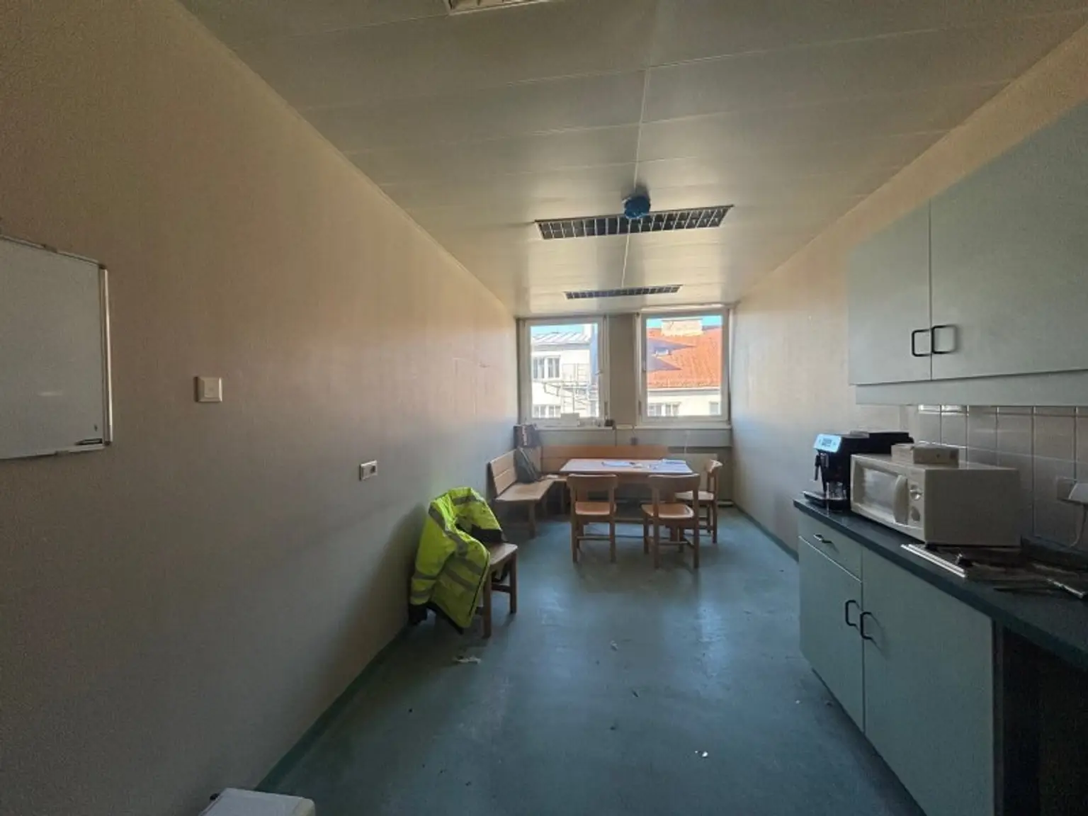 Von dem geräumigen Eingangsbereich führt ein Gang in die einzelnen Büros, in die Archive und in die Küche. Zudem stehen mehrere WCs sowie eine voll ausgestattete Küche zur Verfügung.