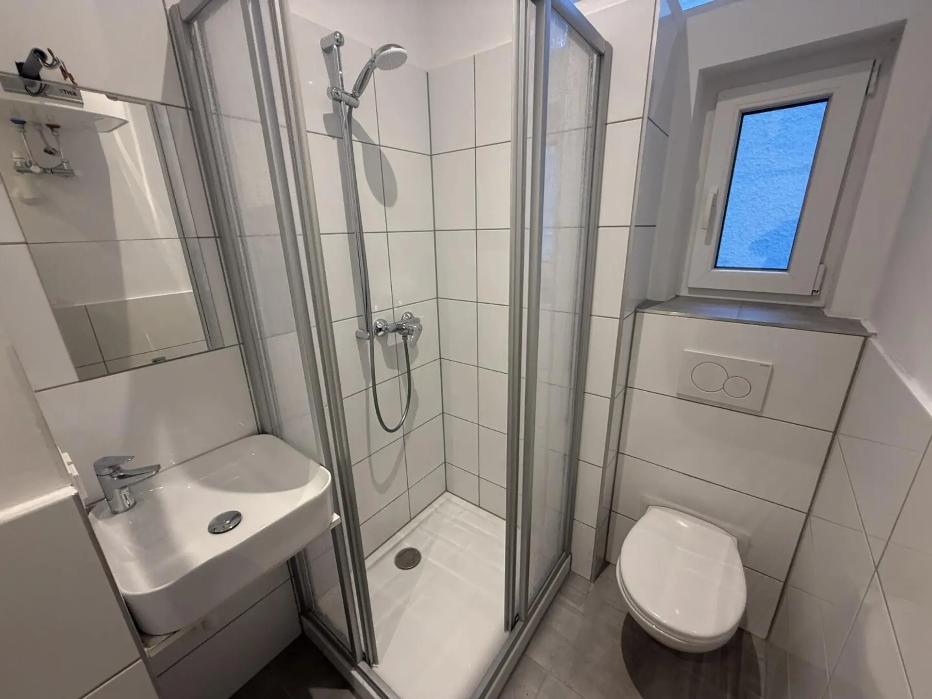 Die Top 3 befindet sich im 1 Obergeschoss und wird über das Stiegenhaus erreicht. Die Wohnung betritt man direkt in den Vorraum. Über diesen gelangt man in die beiden Zimmer sowie die neu möblierte Küche von der aus der Balkon begehbar ist. Das Bad bietet ein WC, Dusche, Waschbecken.