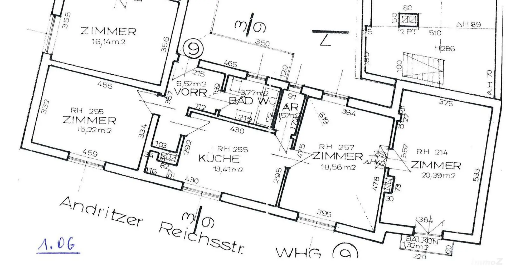 Badezimmer und WC sind neuwertig. Innenhofseitiger Balkon.