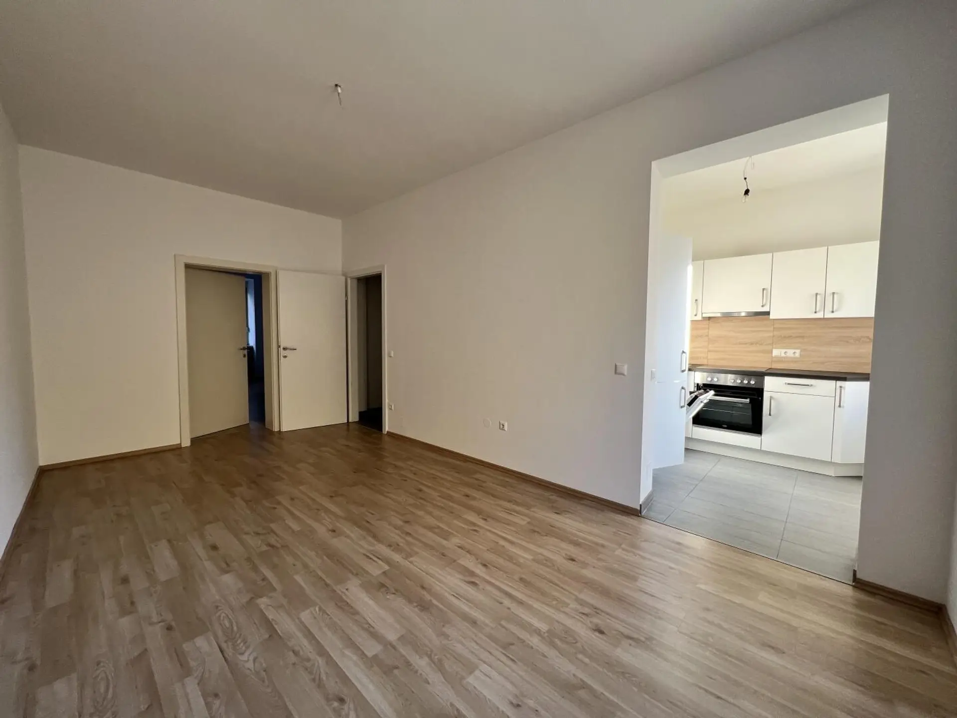 Vom Vorraum gelangt man in ein Schlafzimmer sowie in die Küche und ins Bad mit WC. Durch das 2te Zimmer (Wohnen/Essen) gelangt man in die möblierte Küche und zum 3ten extra Zimmer.