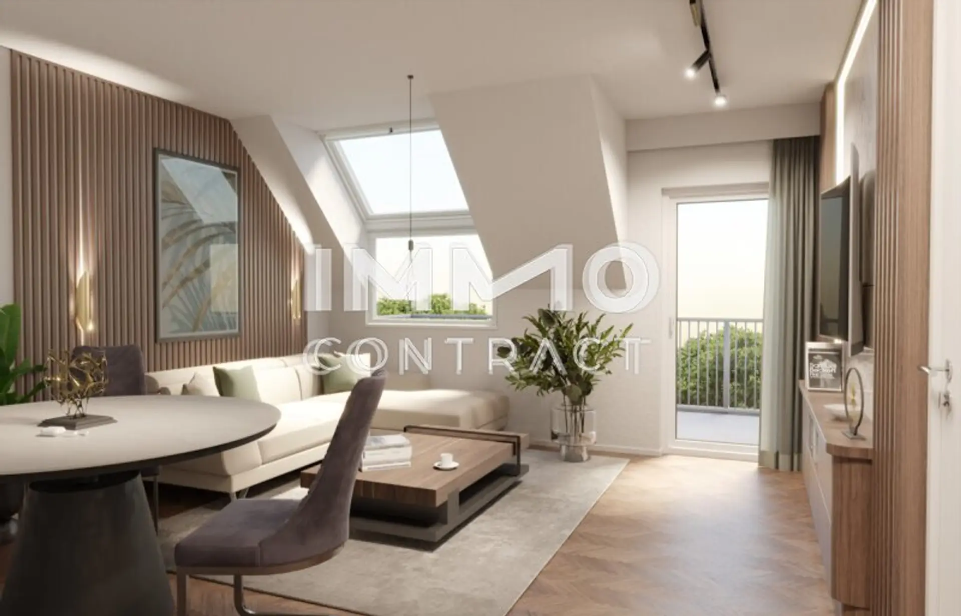Hier ist Platz zum Leben. Das großzügige Wohnzimmer bildet das Herzstück dieser Immobilie – lichtdurchflutet, offen gestaltet und mit direktem Zugang zur einladenden Terrasse. Ob Frühstück im Freien, entspannte Abende mit Freunden oder einfach ein Moment für sich – dieser Außenbereich erweitert Ihr Zuhause ins Grüne.