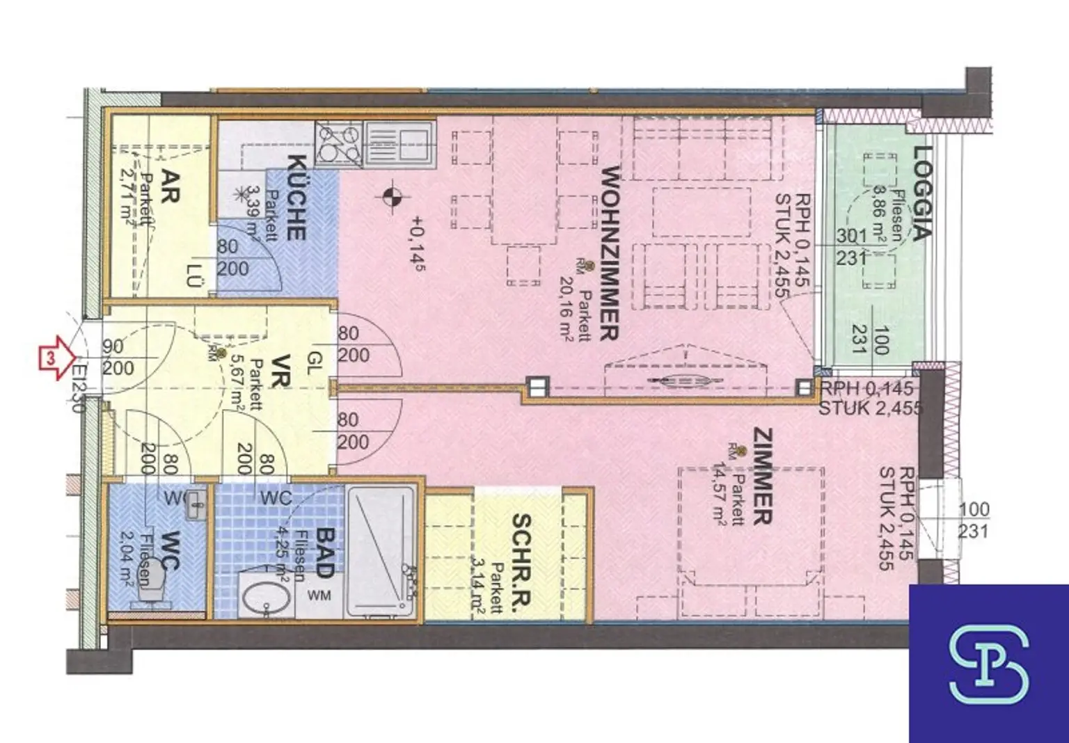 Gesamtmiete inkl. Bk, Lift und 10% USt. € 1.027,19