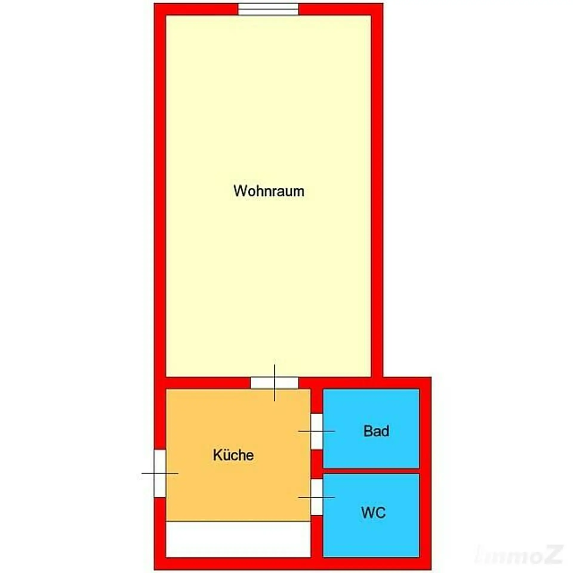 Die Wohnung besteht aus Küche, Wohnraum, Duschbad und WC.