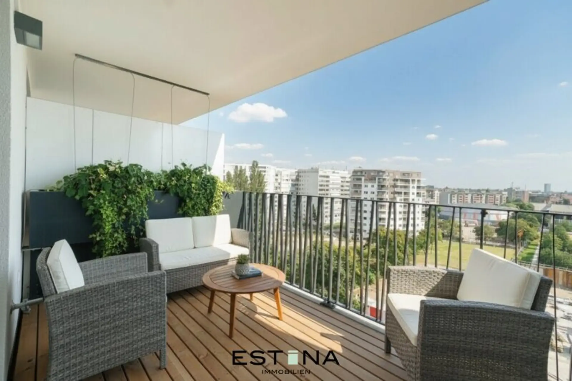 Die Idee, eine ruhige grüne Insel für moderne Stadtbewohner zu schaffen, wurde bravourös umgesetzt. Fest verbaute Pflanzentröge auf den großzügigen Balkonen sind nicht nur dekorative Elemente, sondern auch wesentliche Bestandteile eines umfassenden Beschattungs- und Sichtschutzkonzeptes, das für Privatsphäre und angenehmes Wohnklima sorgt. Auf dem Flachdach gibt es Beete für den individuellen Anbau von Gemüse oder Blumen. Es ist ein Ort der Begegnung, an dem Gärtner unter der schattigen Pergola gemütlich fachsimpeln können. Auf jenem Teil der Dächer, der sich für Urban Gardening nicht eignet, erzeugen Photovoltaikanlagen umweltfreundlichen Strom.