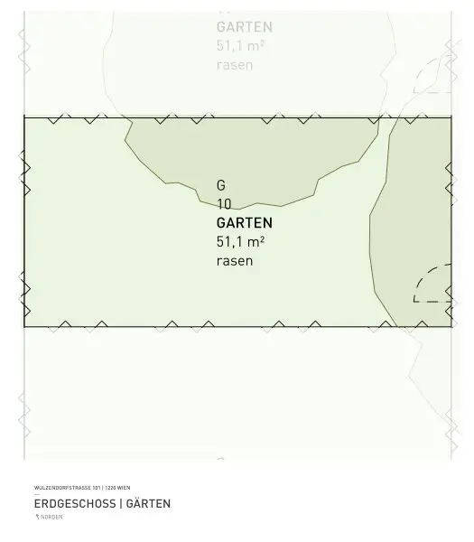 Für alle Eigentümer, auch in den oberen Geschossen, offeriert sich die besondere optionale Möglichkeit eines eigenen Gartenabteils. Alle Gärten werden mit Strom- und Wasseranschluss ausgeführt.