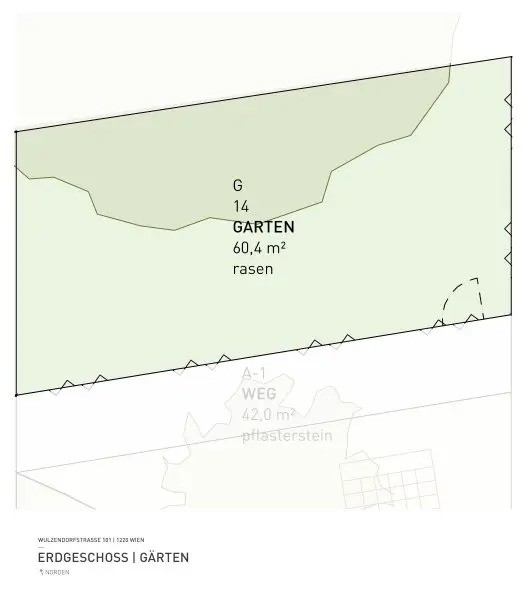 Für alle Eigentümer, auch in den oberen Geschossen, offeriert sich die besondere optionale Möglichkeit eines eigenen Gartenabteils. Alle Gärten werden mit Strom- und Wasseranschluss ausgeführt.