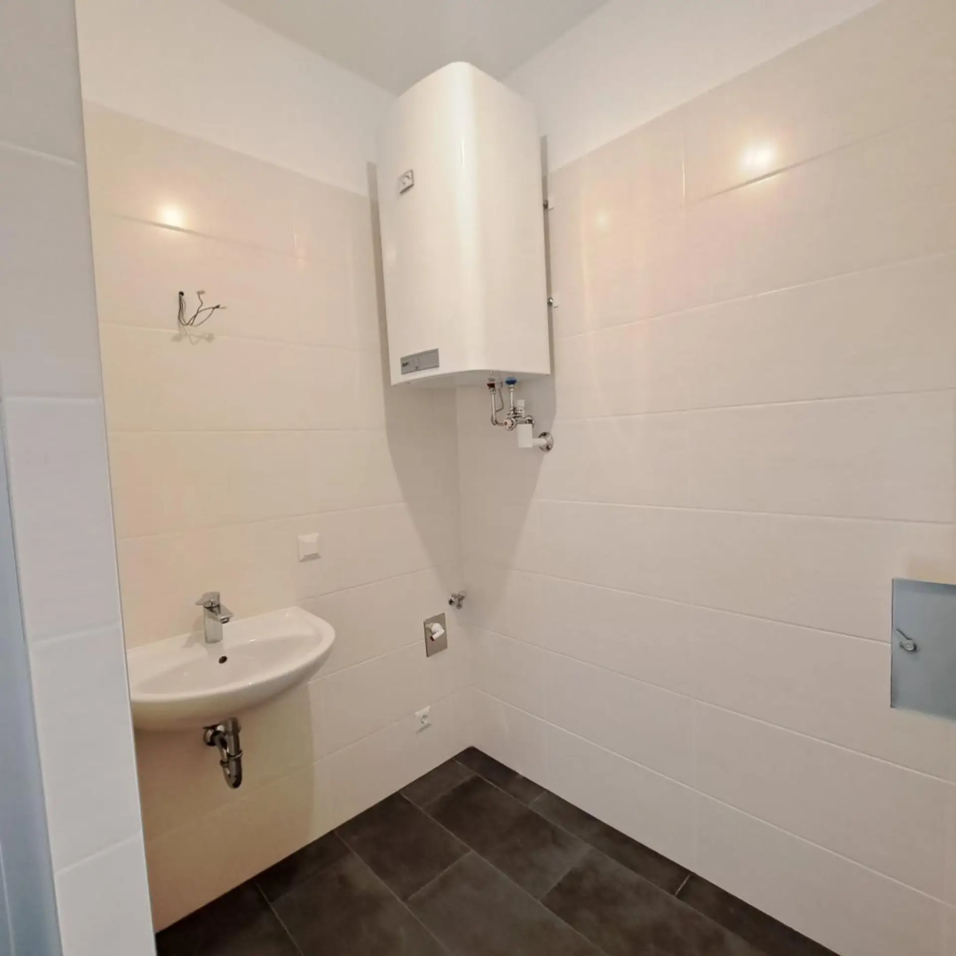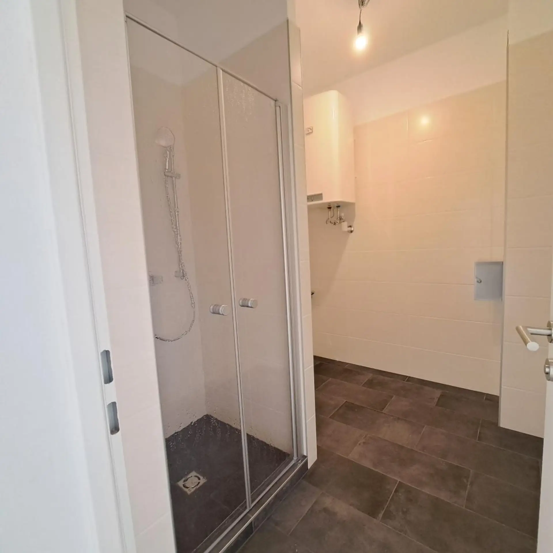 Natürlich gibt es auch ein Badezimmer mit Dusche, Waschbecken und Waschmaschinen-Anschluss.