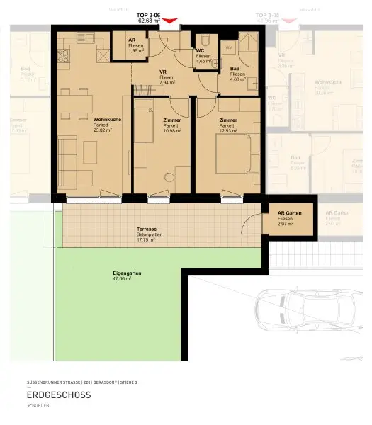 In Gerasdorf, am Rande des 21. Bezirks in Wien, entstehen 80 provisionsfreie Eigentumswohnungen. Die Größen liegen zwischen 41m² bis 69m² und umfassen 2 bzw. 3 Zimmer. Alle Einheiten verfügen über private Freiflächen wie Garten, Terrasse oder Balkon.