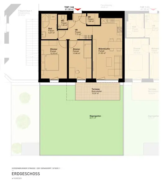 In Gerasdorf, am Rande des 21. Bezirks in Wien, entstehen 80 provisionsfreie Eigentumswohnungen. Die Größen liegen zwischen 41m² bis 69m² und umfassen 2 bzw. 3 Zimmer. Alle Einheiten verfügen über private Freiflächen wie Garten, Terrasse oder Balkon.