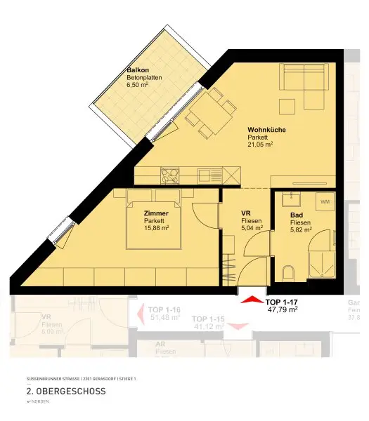 In Gerasdorf, am Rande des 21. Bezirks in Wien, entstehen 80 provisionsfreie Eigentumswohnungen. Die Größen liegen zwischen 41m² bis 69m² und umfassen 2 bzw. 3 Zimmer. Alle Einheiten verfügen über private Freiflächen wie Garten, Terrasse oder Balkon.