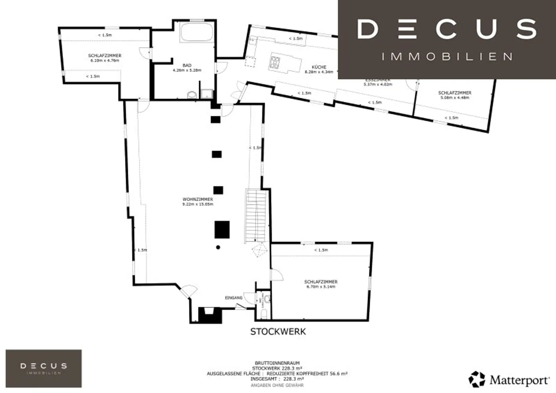 Die Dachgeschosswohnung bietet insgesamt 6 Zimmer inklusive Wohnküche, verteilt auf ca. 273 m²: