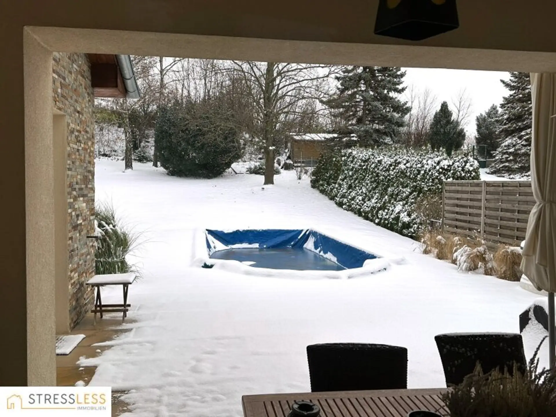 Von hier ist es nur ein großer Sprung und schon sind Sie in Ihrem 8 x 4 mtr. großen Pool mit Römertreppe, der erst vor wenigen Jahren neu errichtet wurde und sich mit 1,5 Meter Tiefe wirklich sehen lassen kann!
