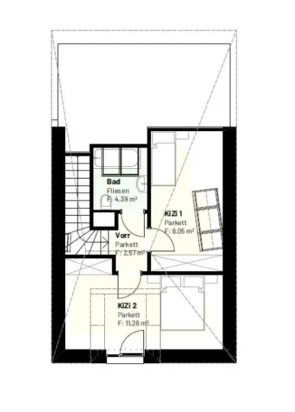 DG: Kinderzimmer - weiteres Schlafzimmer - Bad mit WC - Abstellraum