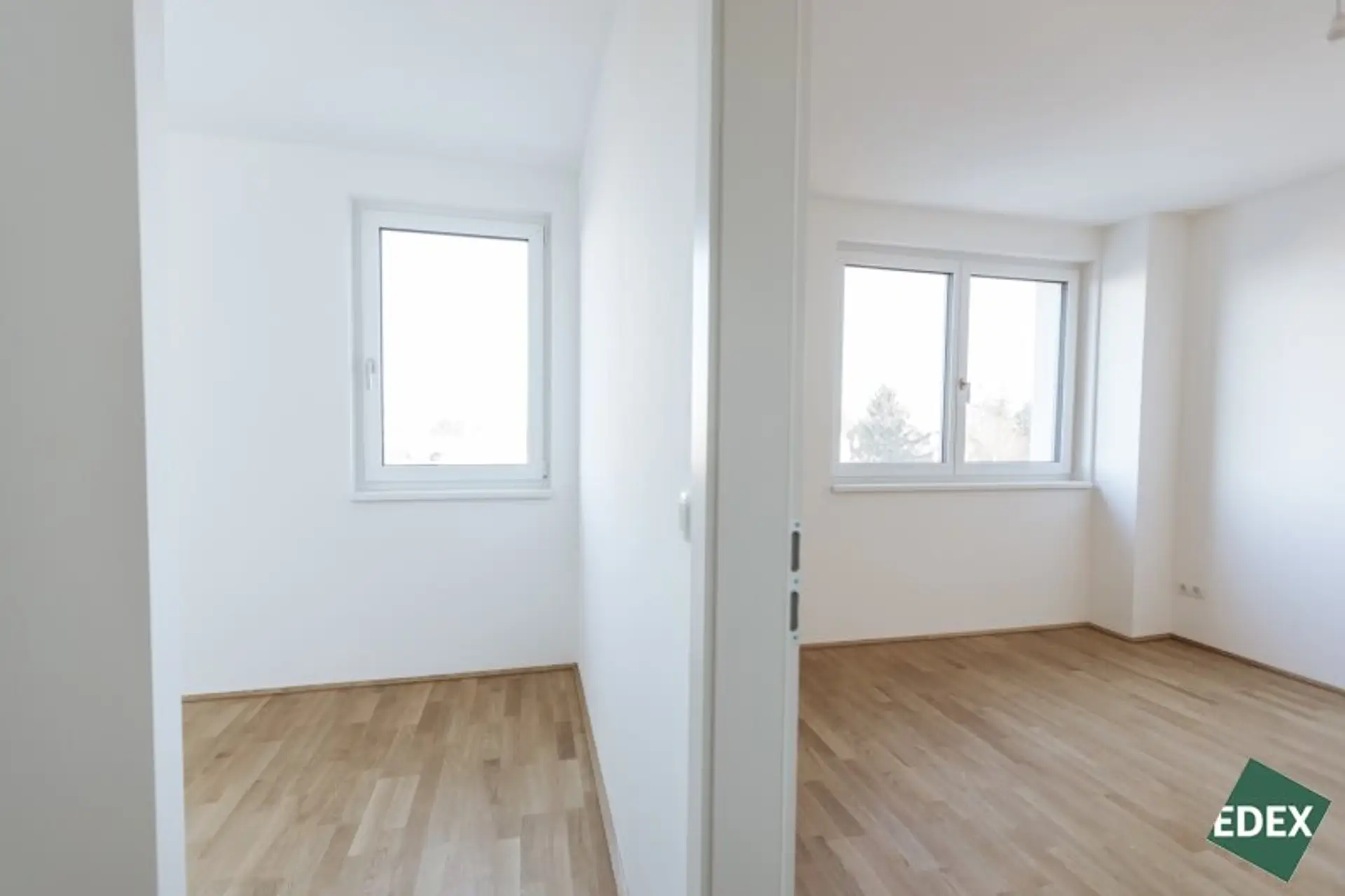 Diese Wohnung bietet nicht nur ein Schlafzimmer mit angrenzendem Schrankraum, sondern einen weiteren ca. 6 m² großen Raum, der sich ideal als Homeoffice eignet. Das Highlight ist zweifellos die ca. 7,45 m² große Loggia in westlicher Ausrichtung, die einen herrlichen Blick ins Grüne ermöglicht.