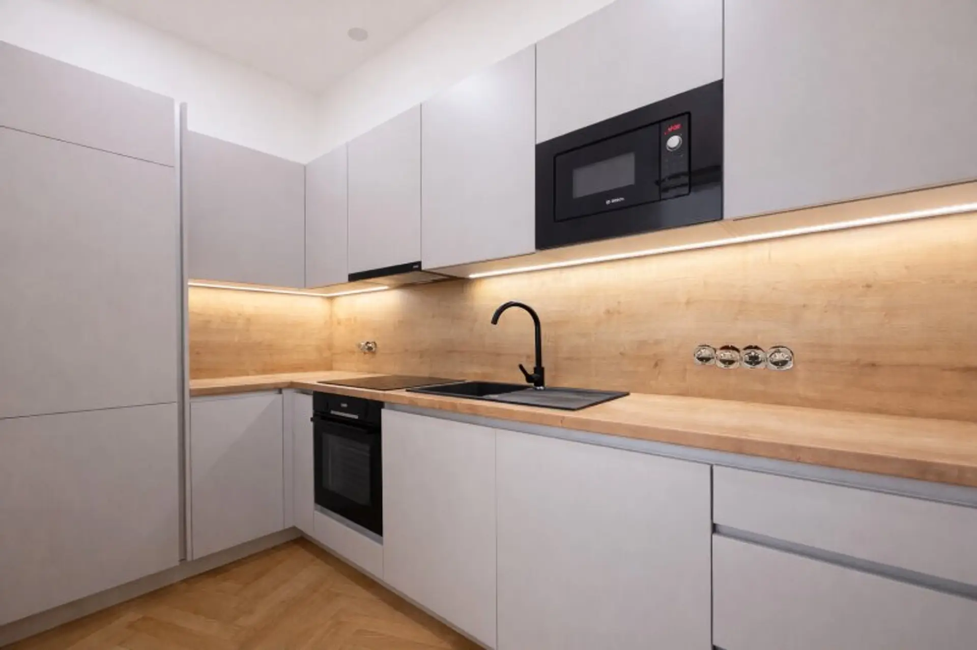 * Hochwertiges Fischgrätparkett
