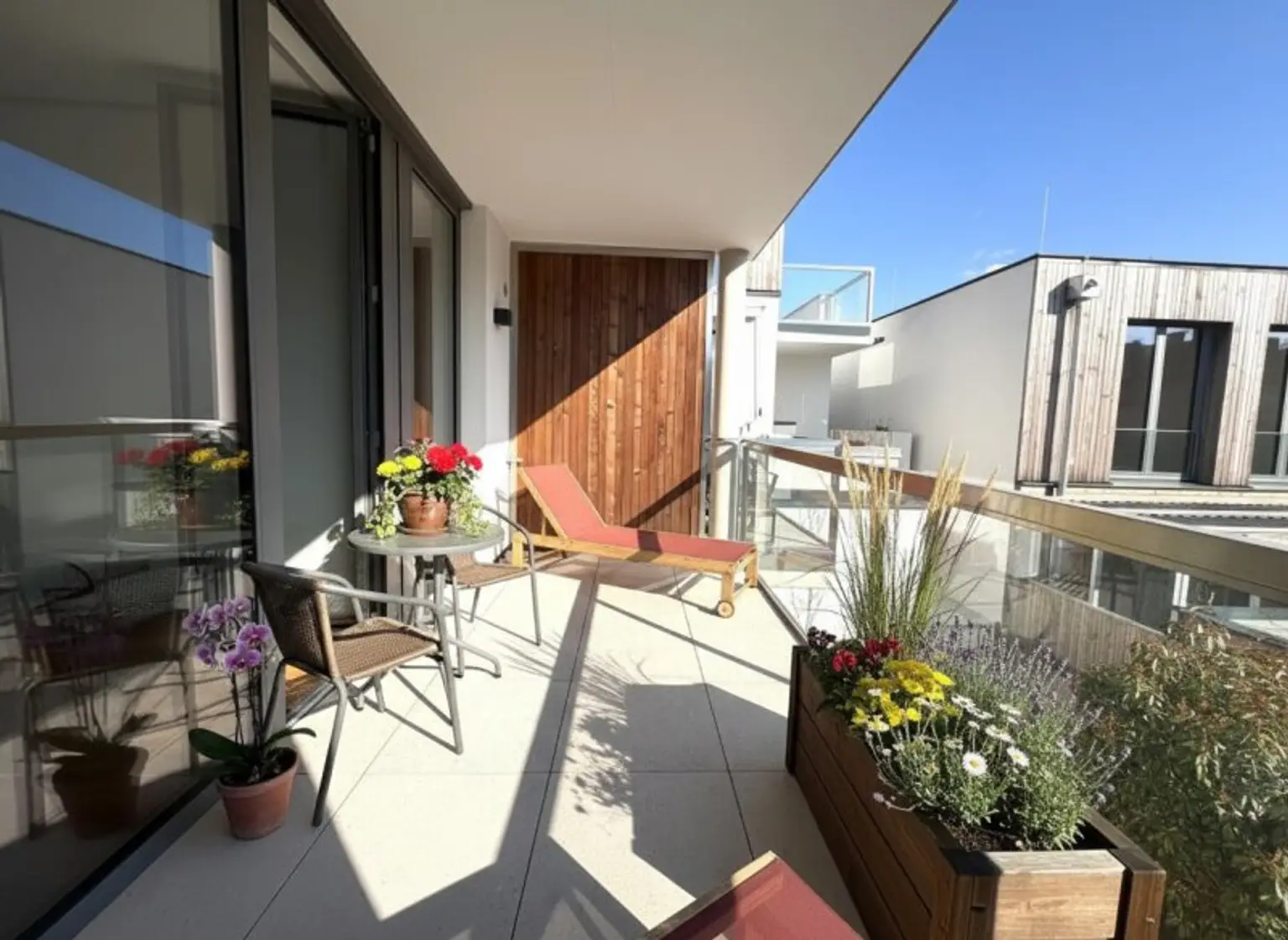 Die Loggia erweitert den Wohnraum nach außen und schafft eine kleine Fläche für frische Luft und Entspannung.