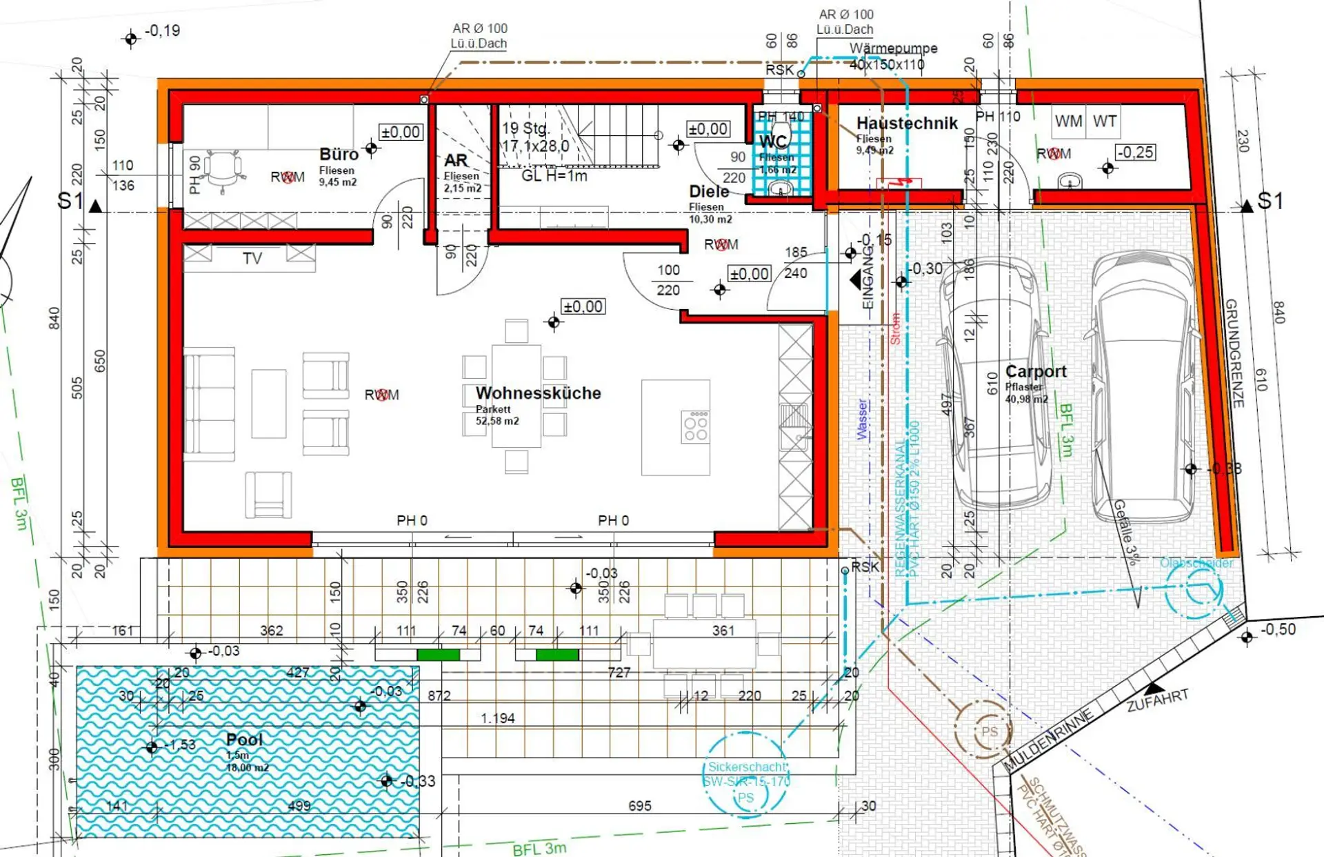 - Abstellplätze: 2 + zusätzlicher Stellplatz