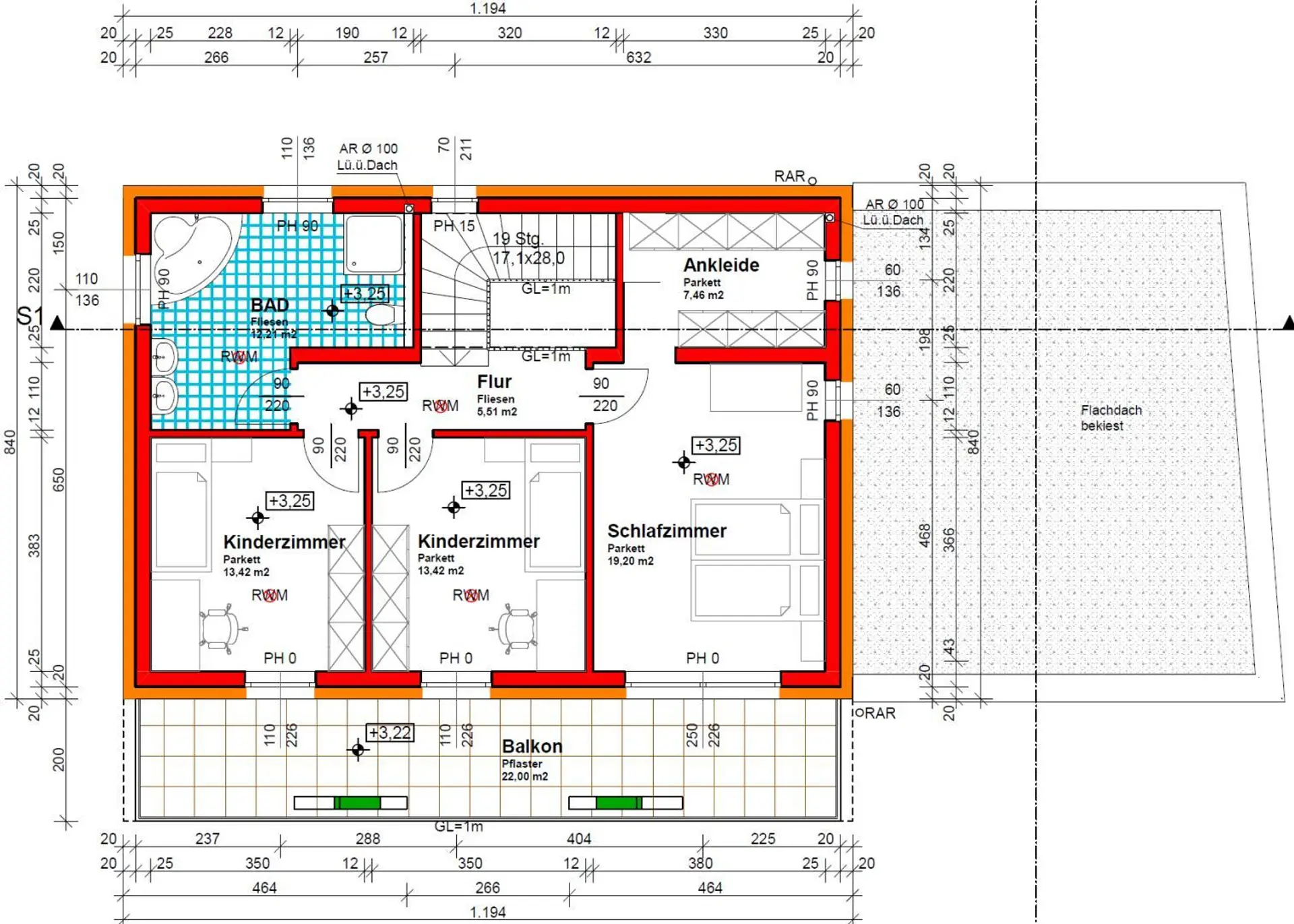 - Balkon: ca. 22 m² (südwestlich ausgerichtet)