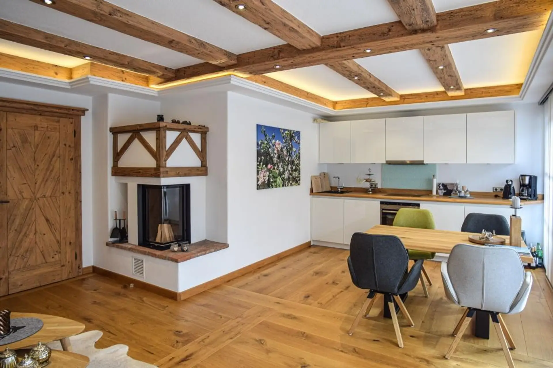 Wohnzimmer/Küche eingebaut und mit behaglichem Kamin