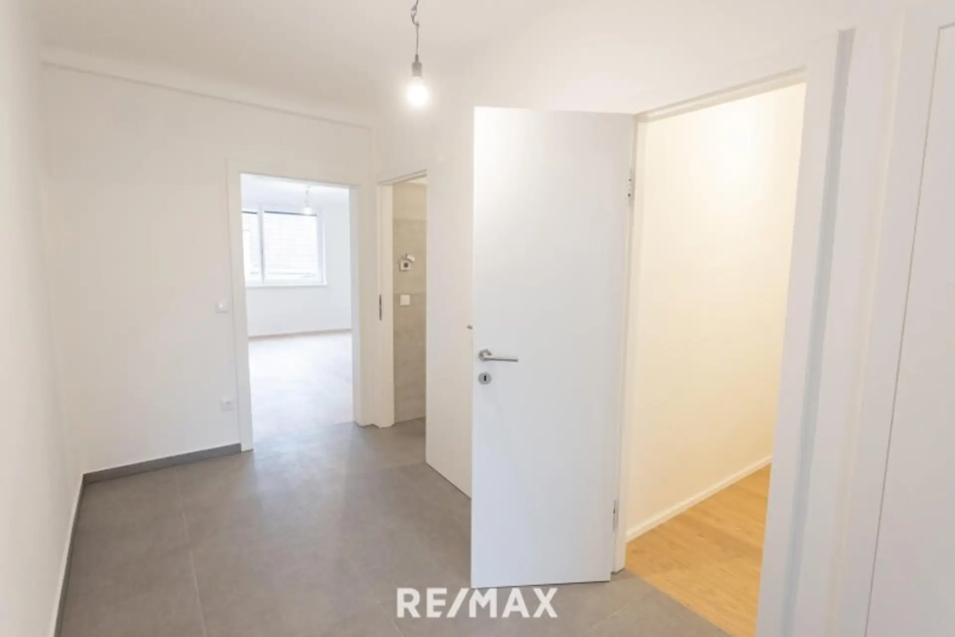 Über den zentralen Vorraum gelangen Sie in alle Räume: eine Wohnküche mit ca. 22 m², ein (südwestseitiges) Zimmer mit ca. 14 m² und ein drittes (auch südwestseitig ausgerichtetes) Zimmer mit ca. 9 m², das Bad mit Dusche, WC und Waschmaschinenanschluss und einen Abstellraum.