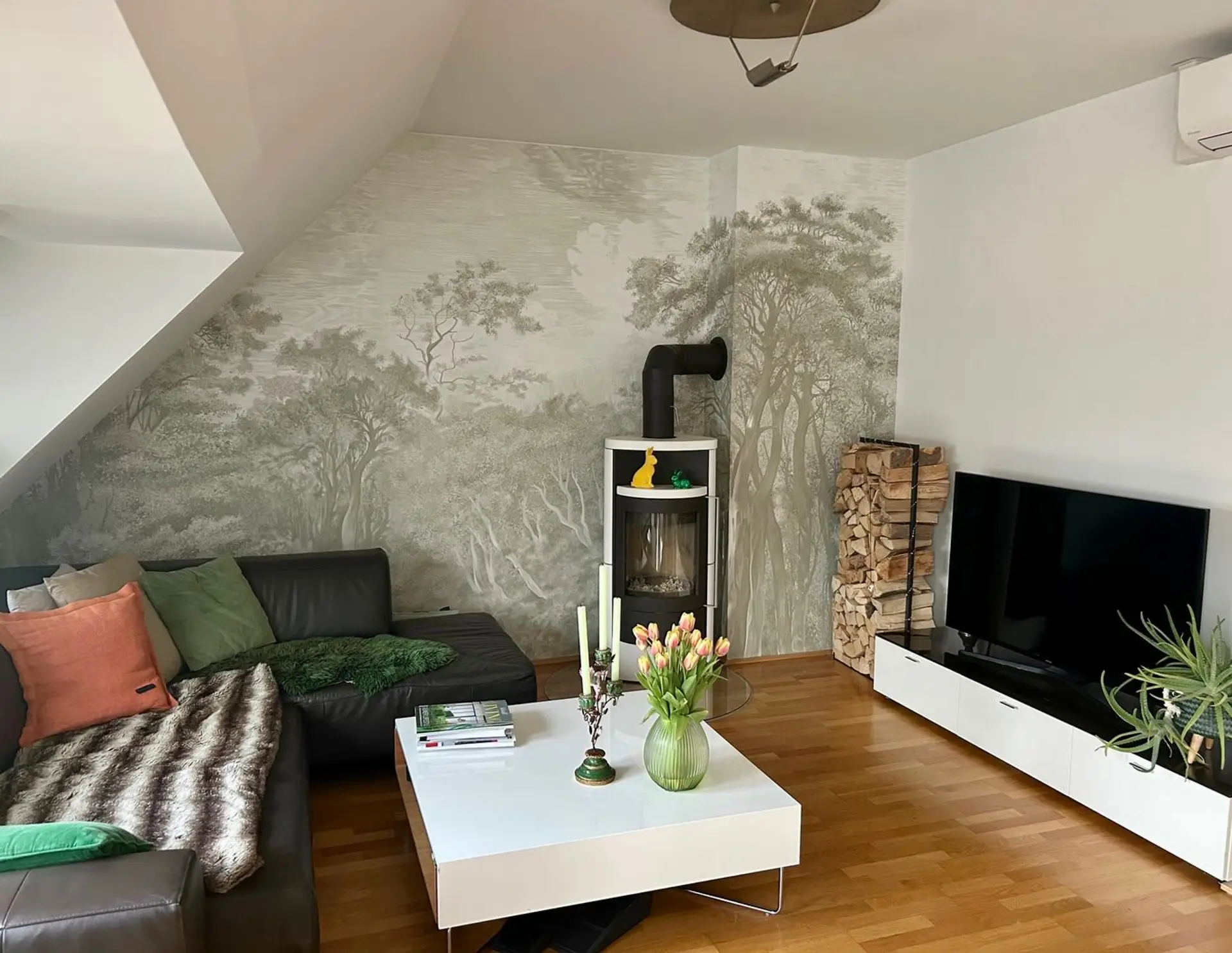 Elegante, helle und gut geschnittene 109m2 DG-Wohnung, davon 12,5m2 Dachterrasse mit Markise und südwestseitiger Ausrichtung in familiärer Wohnanlage. Großer, offener Wohnraum mit Klimaanlage & Kamin, moderne Küche mit…
