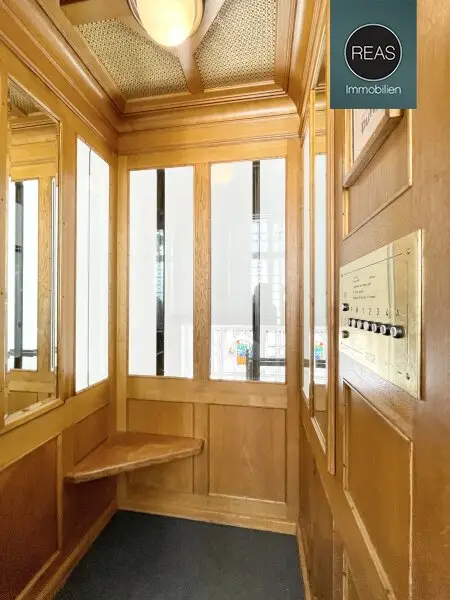 Das Apartment befindet sich im Hofteil des Gebäudes (Ruhelage) im Dachgeschoss und ist per Lift erreichbar. Dieser wurde aufwendig modernisiert und hat trotzdem seine klassische Optik behalten. Das Haus ist in einem Top-Zustand. Der Eingangsbereich, das Stiegenhaus, der Lift etc. sind sehr repräsentativ.