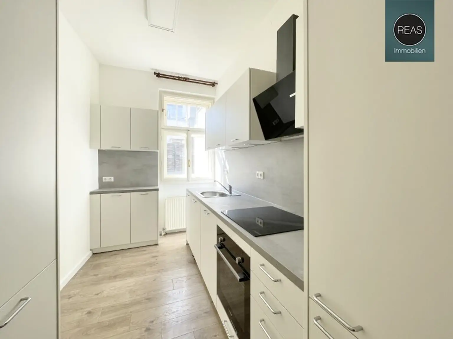* 1 Küche mit neuer Einbauküche inkl. aller Geräte (Waschbecken, Geschirrspüler, Dunstabzug, Backofen, Herd, Kühl-Gefrierkombi) sowie Platz für einen kleinen Frühstücksbereich samt Fenster