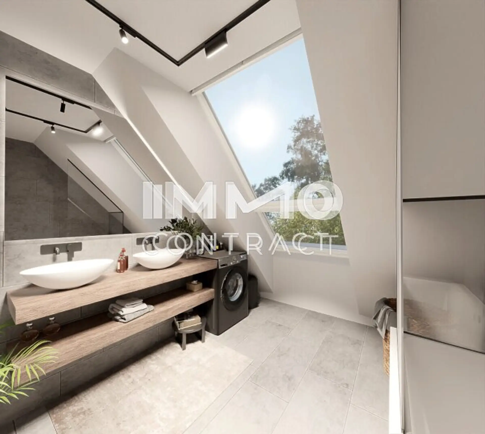 Die Kinder teilen sich ein eigenes Bad mit Badewanne – perfekt für kleine Wasserspiele und entspannte Morgen. Für Eltern gibt es ein separates Bad mit Dusche und eigenem WC, dazu ein praktisches Gäste-WC für Besuch. Ein Abstellraum mit Waschmaschinenanschluss sorgt für Ordnung im Familienchaos.