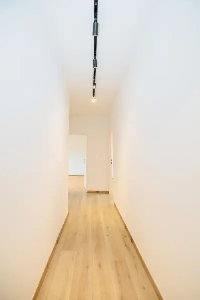 Die Kombination aus edlem Parkett und strapazierfähigem Laminat sorgt für stilvolles Wohngefühl in allen Bereichen.