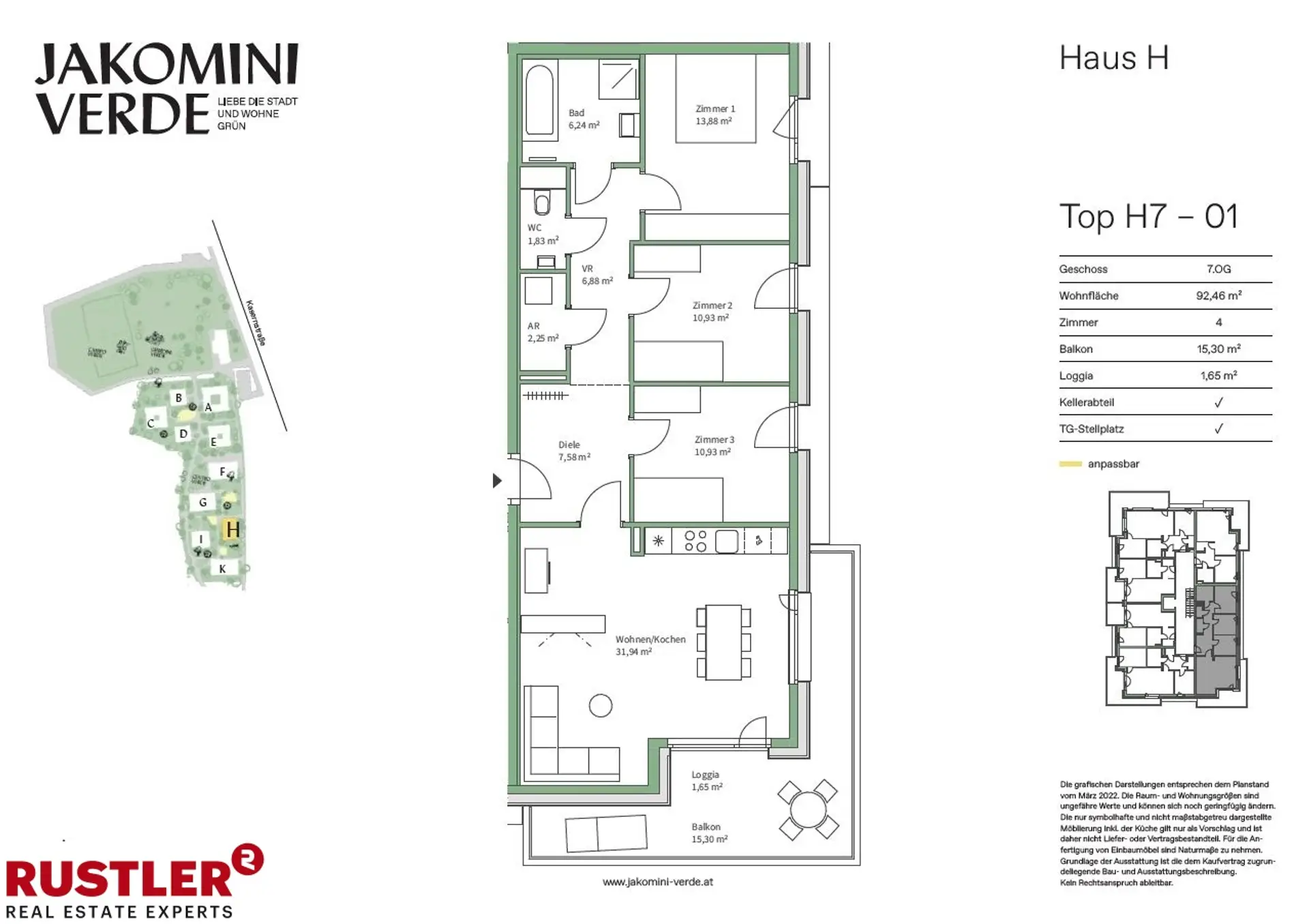 JAKOMINI VERDE - PROVISIONSFREI Modern, hochwertig, nachhaltig - Ihr neues Zuhause im Graz-Jakomini! Entdecken Sie Ihre Traumwohnung im Wohnungsfinder!Jakomini Verde ist ein modernes und nachhaltiges Wohnprojekt im Herzen von Graz, das urbanes Leben mit einer grünen, ruhigen Umgebung vereint. Das gesamte Quartier setzt auf nachhaltige Bauweise und umweltfreundliche Energieversorgung. Durch eine Wasser/Wasser-Wärmepumpe wird das Gebäude effizient beheizt. Zusätzlich wird Fernwärme zur Warmwasserbereitung genutzt, wodurch die Wohneinheiten in den kalten Monaten optimal beheizt und in den heißen Sommermonaten angenehm temperiert werden. Highlights - Moderne Architektur – Lichtdurchflutete Räume, bodentiefe Fenster - Freiflächen für jede Wohnung – Balkon oder Loggia inklusive - Hochwertige Ausstattung – Parkett, Fußbodenheizung, 3-fach-Verglasung - Nachhaltiges Energiekonzept – Wärmepumpe, Fernwärme, PV-Anlage (Mieterstrommodell) - Top-Infrastruktur – Öffis, Einkaufsmöglichkeiten, Naherholung in direkter Nähe - Fahrradfreundlich – direkte Anbindung an das Radwegenetz - Komfort & Barrierefreiheit – Lift, stufenloser Zugang, Tiefgarage verfügbar Wohnungsbeschreibung: Die Top H7-01 ist ca. 92,46 m² groß, befindet sich im 7. Stock und hat folgende Räumlichkeiten: - Vorraum - Wohnküche - 3 Schlafzimmer - Badezimmer mit Badewanne und Dusche - separates WC - Abstellraum - Balkon - Kellerabteil - Tiefgaragenplatz (optional)Lage und Infrastruktur: Die Lage von Jakomini Verde könnte nicht besser sein: Die Mur und der Augartenpark mit dem Augartenbad liegen praktisch vor der Tür und bieten zahlreiche Freizeitmöglichkeiten. Der Jakominiplatz ist schnell erreichbar und auch diverse Einkaufsmöglichkeiten sowie Restaurants und Cafés liegen in der Umgebung. Das Quartier ist perfekt in das Radwegenetz der Stadt eingebunden, wodurch umweltfreundliche Mobilität einfach und schnell möglich ist. Hier verbinden sich urbanes Leben und Natur zu einem idealen Zuhause. Beziehbar: ab sofort Überzeugen Sie sich im Zuge einer Besichtigung!