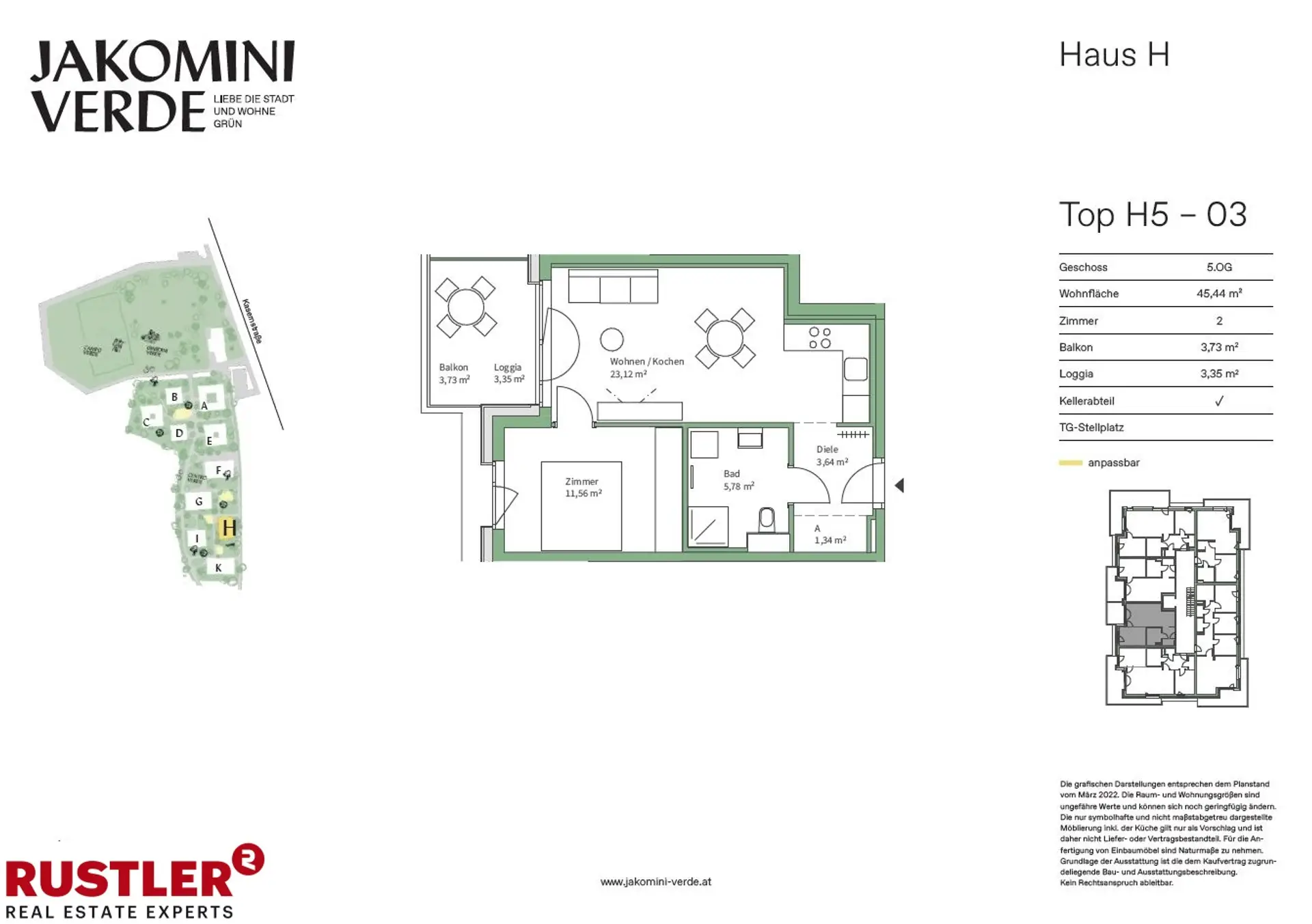 JAKOMINI VERDE - PROVISIONSFREI Modern, hochwertig, nachhaltig - Ihr neues Zuhause im Graz-Jakomini! Entdecken Sie Ihre Traumwohnung im Wohnungsfinder! Jakomini Verde ist ein modernes und nachhaltiges Wohnprojekt im Herzen von Graz, das urbanes Leben mit einer grünen, ruhigen Umgebung vereint. Das gesamte Quartier setzt auf nachhaltige Bauweise und umweltfreundliche Energieversorgung. Durch eine Wasser/Wasser-Wärmepumpe wird das Gebäude effizient beheizt. Zusätzlich wird Fernwärme zur Warmwasserbereitung genutzt, wodurch die Wohneinheiten in den kalten Monaten optimal beheizt und in den heißen Sommermonaten angenehm temperiert werden. Highlights - Moderne Architektur – Lichtdurchflutete Räume, bodentiefe Fenster - Freiflächen für jede Wohnung – Balkon oder Loggia inklusive - Hochwertige Ausstattung – Parkett, Fußbodenheizung, 3-fach-Verglasung - Nachhaltiges Energiekonzept – Wärmepumpe, Fernwärme, PV-Anlage (Mieterstrommodell) - Top-Infrastruktur – Öffis, Einkaufsmöglichkeiten, Naherholung in direkter Nähe - Fahrradfreundlich – direkte Anbindung an das Radwegenetz - Komfort & Barrierefreiheit – Lift, stufenloser Zugang, Tiefgarage verfügbar Wohnungsbeschreibung: Die Top H5-03 ist ca. 45,20 m² groß, befindet sich im 5. Stock und hat folgende Räumlichkeiten: - Vorraum - Wohnküche - Schlafzimmer - Badezimmer mit Dusche und WC - Balkon - Kellerabteil - Tiefgaragenplatz (optional) Lage und Infrastruktur: Die Lage von Jakomini Verde könnte nicht besser sein: Die Mur und der Augartenpark mit dem Augartenbad liegen praktisch vor der Tür und bieten zahlreiche Freizeitmöglichkeiten. Der Jakominiplatz ist schnell erreichbar und auch diverse Einkaufsmöglichkeiten sowie Restaurants und Cafés liegen in der Umgebung. Das Quartier ist perfekt in das Radwegenetz der Stadt eingebunden, wodurch umweltfreundliche Mobilität einfach und schnell möglich ist. Hier verbinden sich urbanes Leben und Natur zu einem idealen Zuhause. Beziehbar: ab sofort Überzeugen Sie sich im Zuge einer Besichtigung!