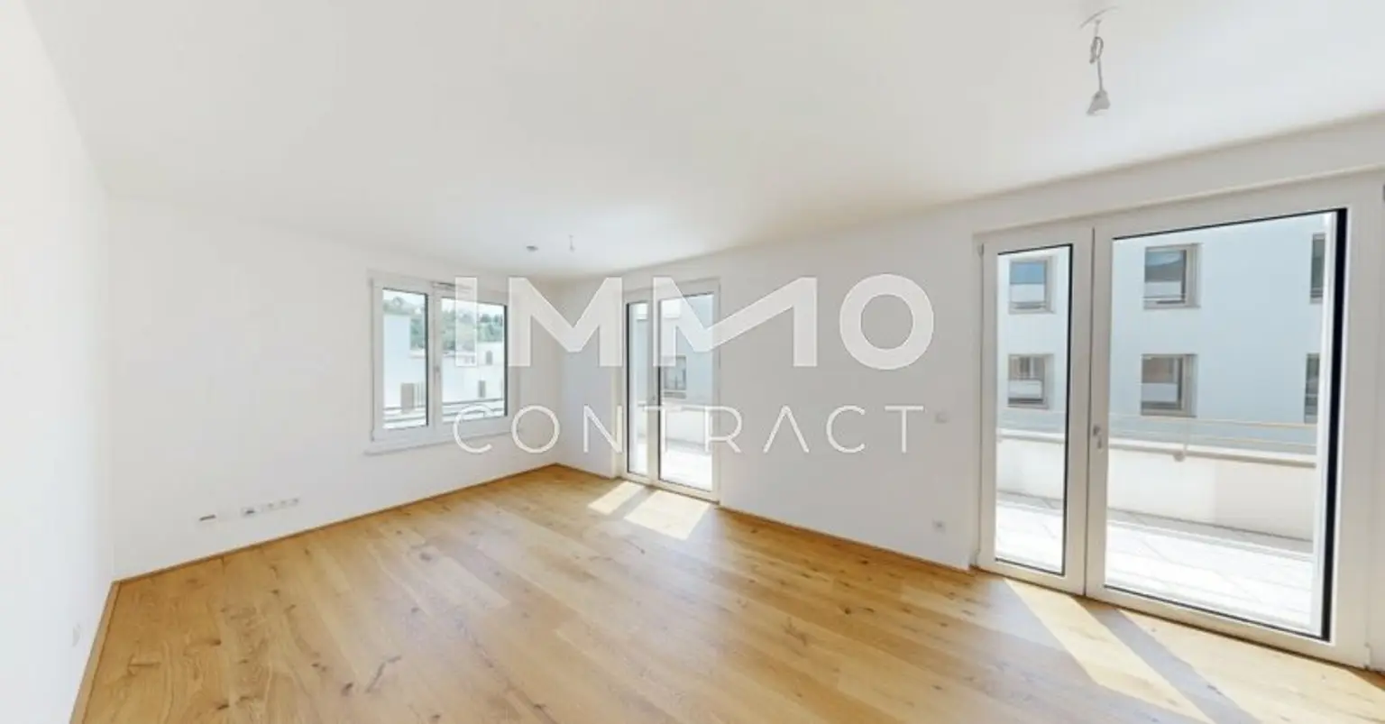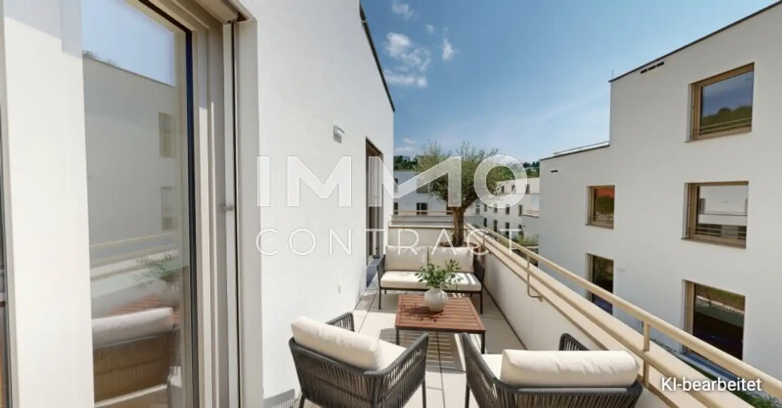 Die verfügbaren Wohnungen bieten 2 bis 4 Zimmer und überzeugen durch durchdachte Grundrisse sowie helle, freundliche Wohnräume. Die Wohnnutzflächen von rund 45 m² bis ca. 90 m² decken unterschiedliche Wohnbedürfnisse ab und ermöglichen ein komfortables, zeitgemäßes Wohnen. Alle Einheiten sind bereits fertiggestellt und schlüsselfertig ausgeführt. Private Freiflächen in Form von Gärten, Balkonen, Loggien oder Terrassen erweitern den Wohnraum ins Freie und sorgen für zusätzliche Lebensqualität in einem angenehm grünen Wohnumfeld. Besonderer Wert wurde auf eine nachhaltige und moderne Bauweise gelegt. Die energieeffiziente Haustechnik mit Wärmepumpensystem, Fußbodenheizung sowie – in den Dachgeschoßen –zusätzlicher Temperierung sorgt für ein angenehmes Raumklima zu jeder Jahreszeit. Hochwertige Materialien und eine zeitlose Ausstattung unterstreichen den Anspruch an Qualität und Wohnkomfort. Großzügig gestaltete Allgemeinflächen bieten Raum für Begegnung, kurze Aufenthalte und ein angenehmes Miteinander innerhalb der Wohnanlage. Der gemeinschaftlich nutzbare Raum erweitert das Wohnangebot sinnvoll und kann flexibel für private Anlässe, Treffen oder gemeinschaftliche Aktivitäten genutzt werden. Ergänzend stehen gut erreichbare Fahrrad- und Kinderwagenabstellräume zur Verfügung, die den Alltag komfortabel und organisiert gestalten. KFZ- und Motorradstellplätze in der hauseigenen Garage sorgen für witterungsgeschütztes Parken und unterstreichen den hohen Anspruch an Funktionalität und Wohnqualität. Die Anlage verbindet damit entspanntes Wohnen in einem gewachsenen Umfeld mit moderner Architektur und langfristiger Werthaltigkeit.