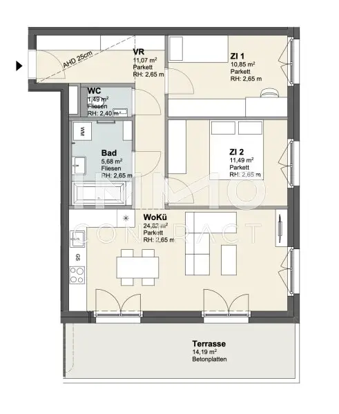* Private Freiflächen in Form von Gärten, Balkonen, Terrassen oder Loggien