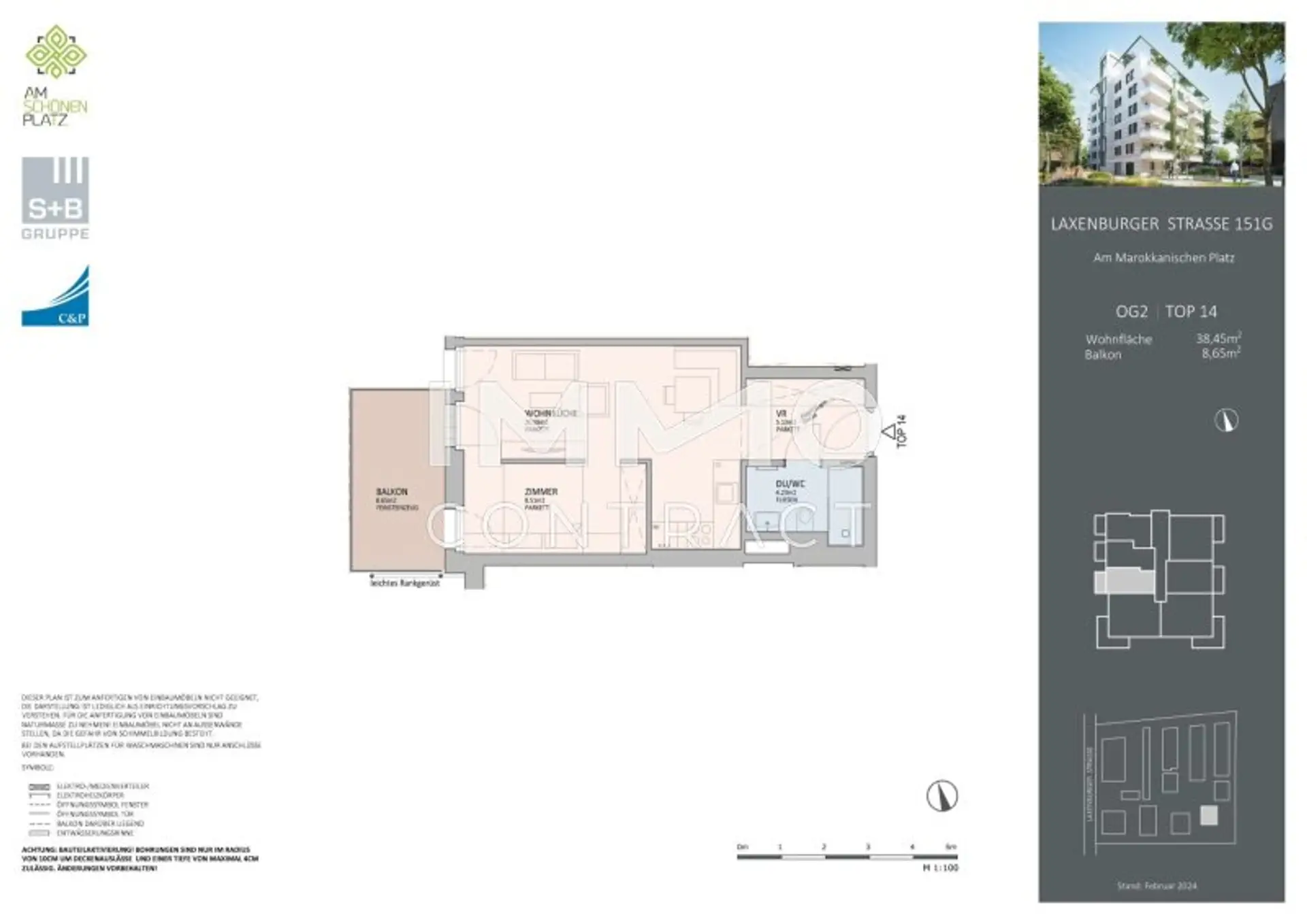 Ausstattung: Barrierefrei Boden Fahrstuhl Kabel/Satelliten-TV Klimaanlage Tiefgarage Parkplatz Fahrradraum Balkon