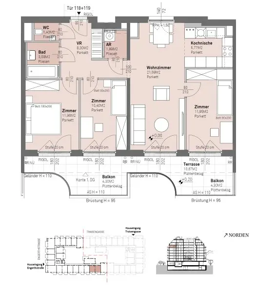 Direkt am malerischen Donauufer entfaltet sich das prestigeträchtige Wohnprojekt, Traisengasse 20–22. Der moderne Neubau beeindruckt mit eleganter Architektur, begrüntem Innenhof und spektakulärem Donaublick. 269 Eigentumswohnungen bieten vielfältige Wohnungsvarianten für alle Lebensstile und Generationen. Die Nähe zur Donauinsel und die schnelle Anbindung ans Stadtzentrum versprechen ein privilegiertes Lebensgefühl in einem der lebendigsten Bezirke Wiens.