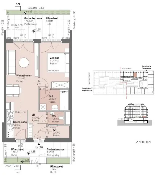 Die modernen 2-Zimmer-Wohnungen sind ideal für Singles und Paare. Mit 37 bis 45 m² vereinen sie einen offenen Wohn-/Essbereich, ein separates Schlafzimmer sowie Zugang zur Terrasse oder zum eigenen Garten. Höchsten Wohnkomfort bieten auch die Maisonette-, Garten- und Hofwohnungen mit 3 oder 4 Zimmern. Die Gartenwohnungen verfügen über private Grünflächen, während Hofwohnungen direkten Zugang zum begrünten Innenhof haben. Die Dachgeschoßwohnungen und Penthouses bieten luxuriöses Wohnen mit 43 bis 126 m² und 2 bis 4 Zimmern. Atemberaubende Ausblicke und ein begehrter Rückzugsort im Herzen der Stadt zeichnen diese Einheiten aus.