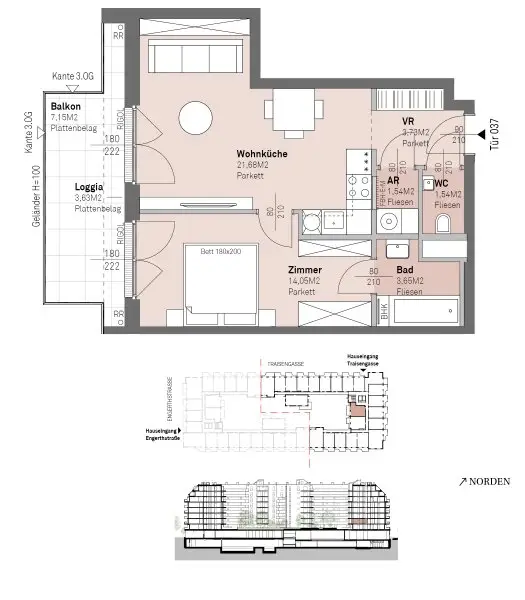 Direkt am malerischen Donauufer entfaltet sich das prestigeträchtige Wohnprojekt, Traisengasse 20–22. Der moderne Neubau beeindruckt mit eleganter Architektur, begrüntem Innenhof und spektakulärem Donaublick. 269 Eigentumswohnungen bieten vielfältige Wohnungsvarianten für alle Lebensstile und Generationen. Die Nähe zur Donauinsel und die schnelle Anbindung ans Stadtzentrum versprechen ein privilegiertes Lebensgefühl in einem der lebendigsten Bezirke Wiens.