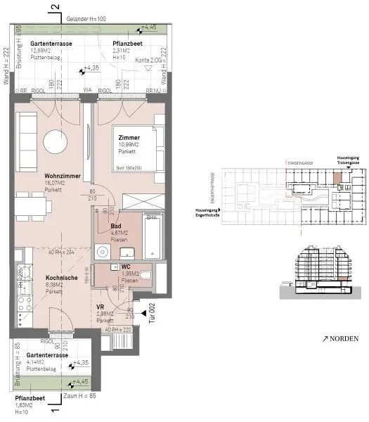 Die modernen 2-Zimmer-Wohnungen sind ideal für Singles und Paare. Mit 37 bis 45 m² vereinen sie einen offenen Wohn-/Essbereich, ein separates Schlafzimmer sowie Zugang zur Terrasse oder zum eigenen Garten. Höchsten Wohnkomfort bieten auch die Maisonette-, Garten- und Hofwohnungen mit 3 oder 4 Zimmern. Die Gartenwohnungen verfügen über private Grünflächen, während Hofwohnungen direkten Zugang zum begrünten Innenhof haben. Die Dachgeschoßwohnungen und Penthouses bieten luxuriöses Wohnen mit 43 bis 126 m² und 2 bis 4 Zimmern. Atemberaubende Ausblicke und ein begehrter Rückzugsort im Herzen der Stadt zeichnen diese Einheiten aus.