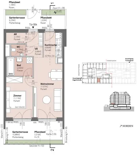 Die modernen 2-Zimmer-Wohnungen sind ideal für Singles und Paare. Mit 37 bis 45 m² vereinen sie einen offenen Wohn-/Essbereich, ein separates Schlafzimmer sowie Zugang zur Terrasse oder zum eigenen Garten. Höchsten Wohnkomfort bieten auch die Maisonette-, Garten- und Hofwohnungen mit 3 oder 4 Zimmern. Die Gartenwohnungen verfügen über private Grünflächen, während Hofwohnungen direkten Zugang zum begrünten Innenhof haben. Die Dachgeschoßwohnungen und Penthouses bieten luxuriöses Wohnen mit 43 bis 126 m² und 2 bis 4 Zimmern. Atemberaubende Ausblicke und ein begehrter Rückzugsort im Herzen der Stadt zeichnen diese Einheiten aus.