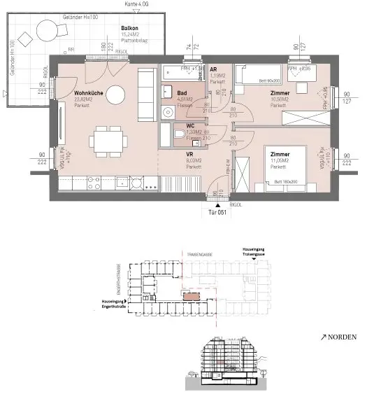 Direkt am malerischen Donauufer entfaltet sich das prestigeträchtige Wohnprojekt, Traisengasse 20–22. Der moderne Neubau beeindruckt mit eleganter Architektur, begrüntem Innenhof und spektakulärem Donaublick. 269 Eigentumswohnungen bieten vielfältige Wohnungsvarianten für alle Lebensstile und Generationen. Die Nähe zur Donauinsel und die schnelle Anbindung ans Stadtzentrum versprechen ein privilegiertes Lebensgefühl in einem der lebendigsten Bezirke Wiens.