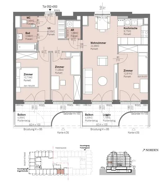Direkt am malerischen Donauufer entfaltet sich das prestigeträchtige Wohnprojekt, Traisengasse 20–22. Der moderne Neubau beeindruckt mit eleganter Architektur, begrüntem Innenhof und spektakulärem Donaublick. 269 Eigentumswohnungen bieten vielfältige Wohnungsvarianten für alle Lebensstile und Generationen. Die Nähe zur Donauinsel und die schnelle Anbindung ans Stadtzentrum versprechen ein privilegiertes Lebensgefühl in einem der lebendigsten Bezirke Wiens.