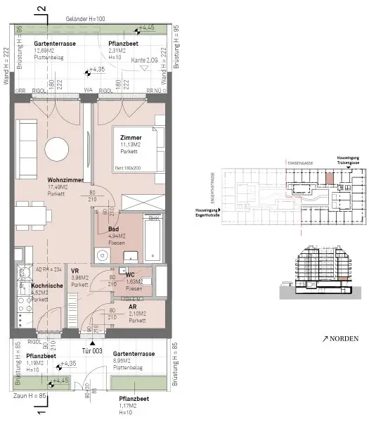 Die modernen 2-Zimmer-Wohnungen sind ideal für Singles und Paare. Mit 37 bis 45 m² vereinen sie einen offenen Wohn-/Essbereich, ein separates Schlafzimmer sowie Zugang zur Terrasse oder zum eigenen Garten. Höchsten Wohnkomfort bieten auch die Maisonette-, Garten- und Hofwohnungen mit 3 oder 4 Zimmern. Die Gartenwohnungen verfügen über private Grünflächen, während Hofwohnungen direkten Zugang zum begrünten Innenhof haben. Die Dachgeschoßwohnungen und Penthouses bieten luxuriöses Wohnen mit 43 bis 126 m² und 2 bis 4 Zimmern. Atemberaubende Ausblicke und ein begehrter Rückzugsort im Herzen der Stadt zeichnen diese Einheiten aus.