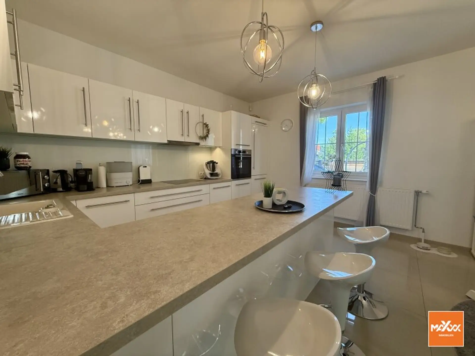 Das Haus verfügt über insgesamt 5 Zimmer – ideal für Familien oder Paare mit Platzbedarf. Der lichtdurchflutete Wohn- und Essbereich mit offener, moderner Küche und direktem Zugang zur Terrasse bildet das Herzstück des Hauses. Zusätzlich stehen 4 Schlafzimmer sowie 2 Badezimmer zur Verfügung. In allen Fenstern des Wohnbereichs sind praktische Rollläden vorhanden.