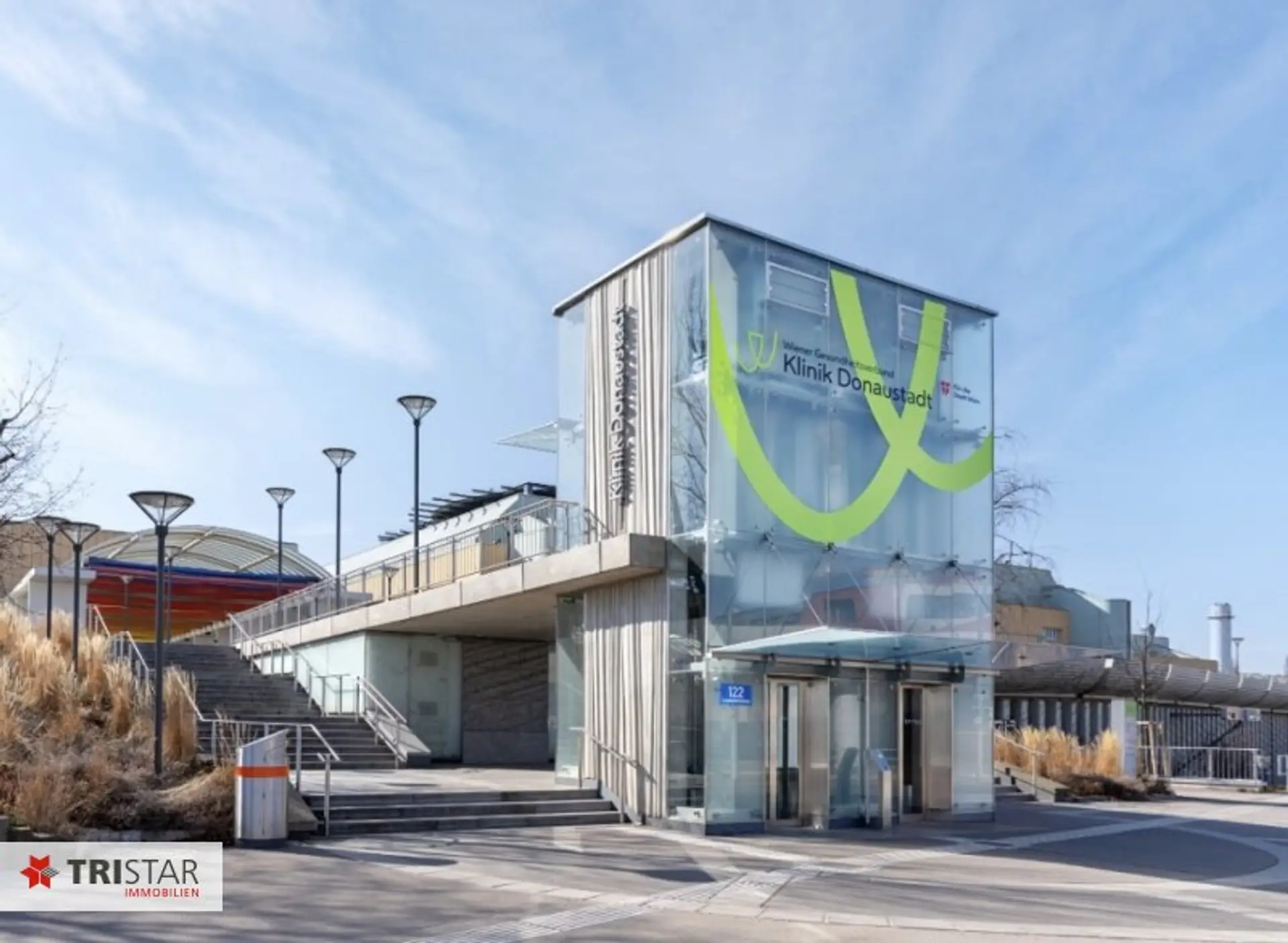 * Verkehr: Bus 92A (65 m), Bus 93A (280 m), U2 Donauspital (1,4 km), Straßenbahn 25 (850 m)