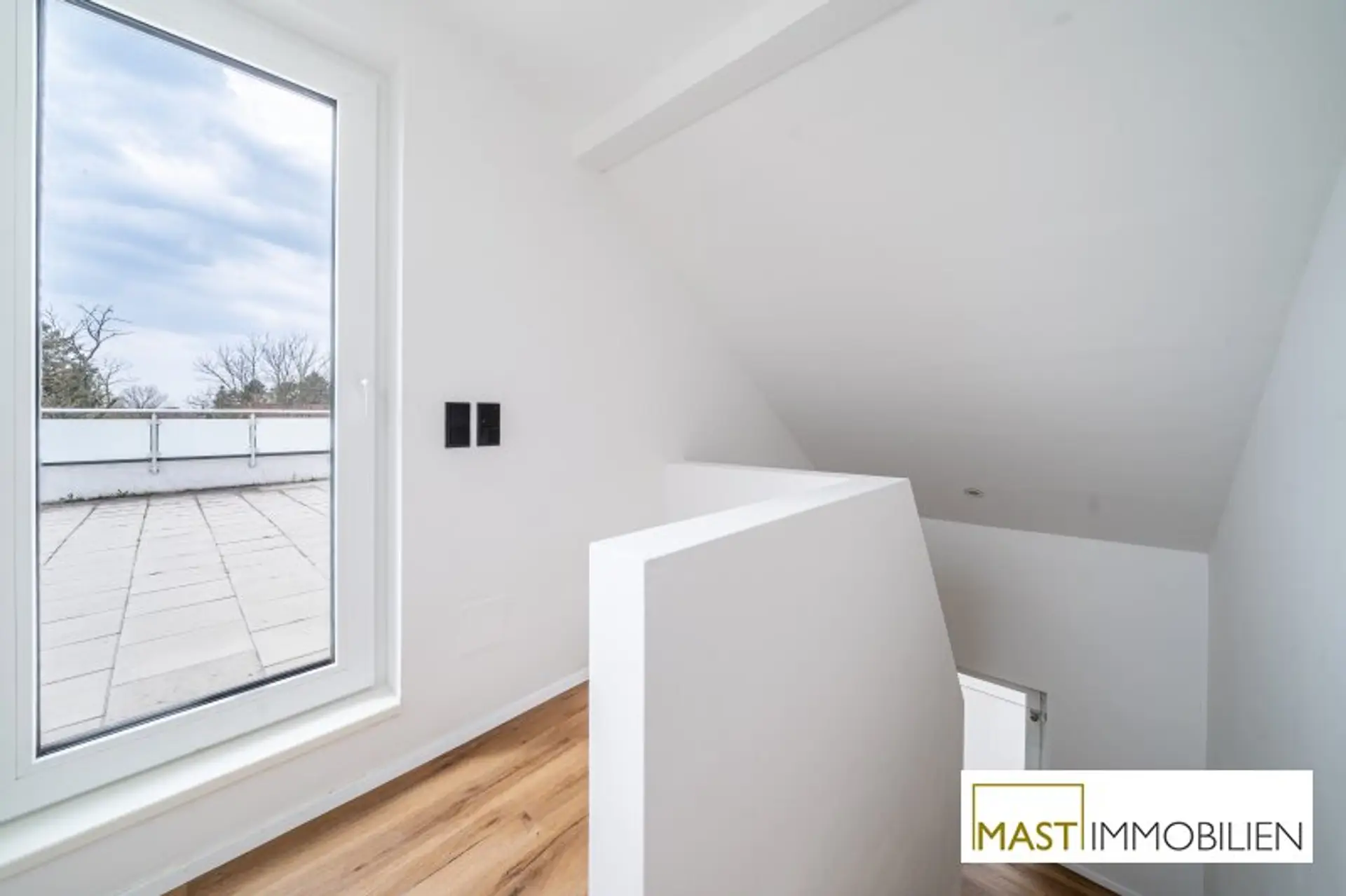 Zum Verkauf gelangt eine Doppelhaushälfte mit 5 Zimmern und 71 m² Dachterrasse in absoluter Ruhelage in Strasshof an der Nordbahn - nur 11 km von Wien entfernt.