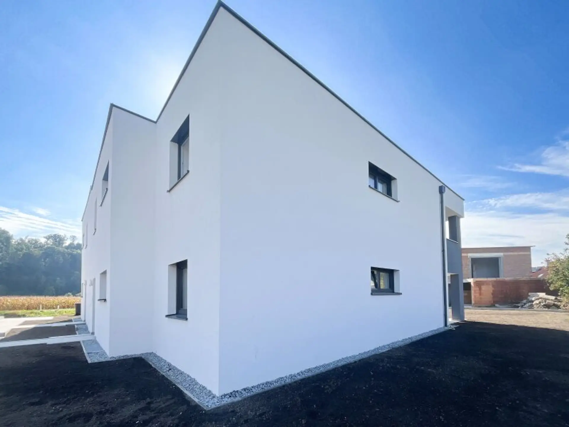 Zum Verkauf steht eine bezaubernde Doppelhaushälfte in Pucking, die durch ihre großzügige Raumaufteilung und die hochwertige Ausstattung überzeugt. Mit einem eigenen Garten, einer überdachten Terrasse und einem schönen Balkon im OG bietet diese Doppelhaushälfte den perfekten Rückzugsort für alle, die das Leben im Grünen genießen möchten, ohne auf die Vorteile der städtischen Nähe verzichten zu müssen. Die Fertigstellung der Doppelhaushälfte ist für den Sommer 2025 vorgesehen, und sie wird in einem schlüsselfertigen Zustand übergeben – Sie müssen sich also um nichts mehr kümmern und können sofort einziehen. Mit dem Kauf der Doppelhaushälfte werden außerdem zwei Garagen zum Preis von 28.000 €, sowie drei Außenstellplätze für 12.000 € erworben, welche zusätzlich zum Kaufpreis anfallen. Statt den Garagen besteht die Möglichkeit, Carports zu errichten, welche kostengünstiger sind. Die Doppelhaushälfte wird mittels Luftwärmepumpe beheizt. Es sind 3 fachverglaste Fenster verbaut mit elektrischen Rollo weiteres sind in allen Zimmern TV sowie Internet Anschlüsse vorhanden. Weitere Informationen finden Sie in der Bau- und Ausstattungsbeschreibung. Ein separater Hobbyraum steht im Keller zur Verfügung.